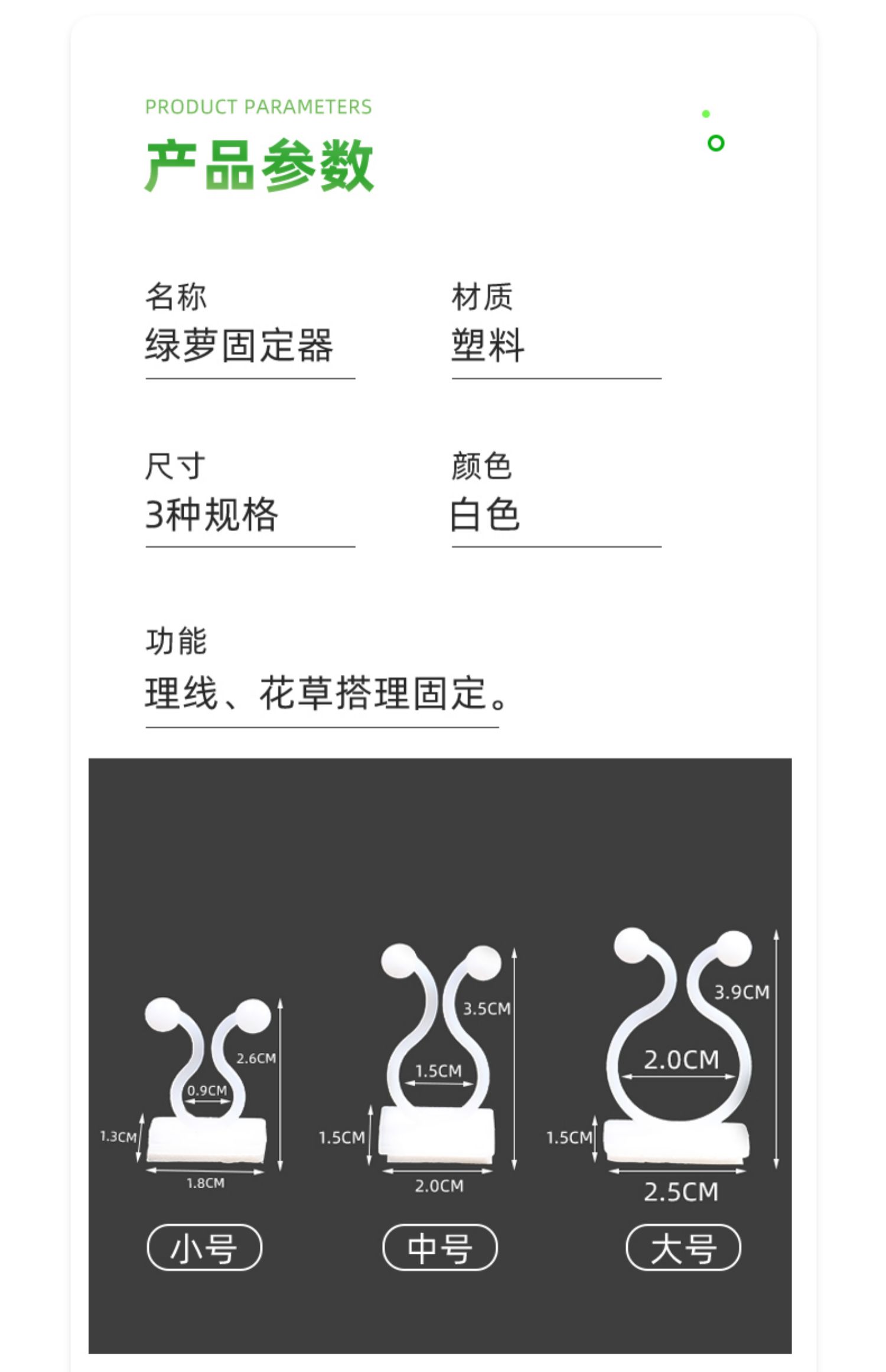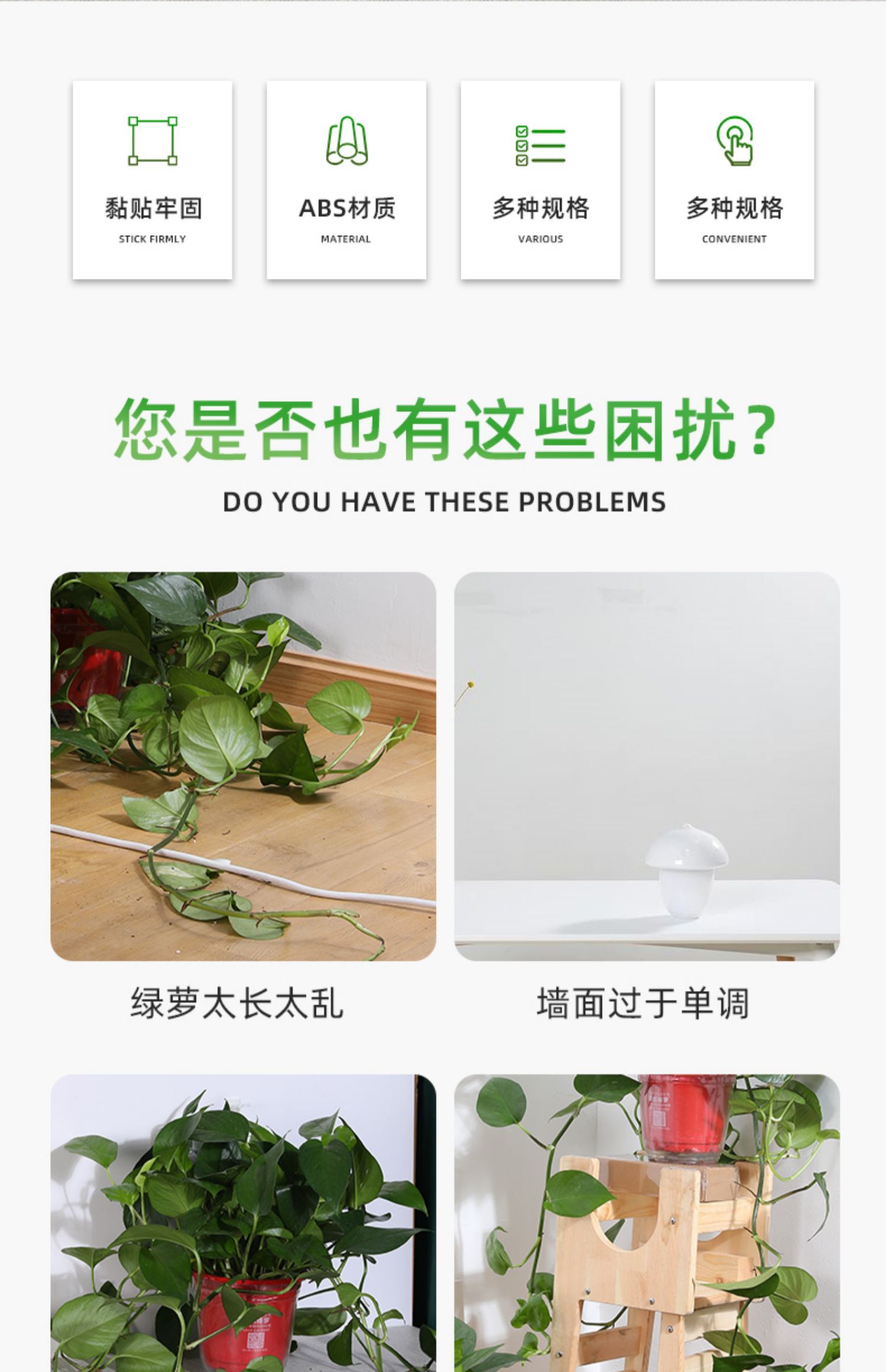 想在院里屋里种点绿菠,但是传统花架占地面积大、造型不好看等~今天,绿菠爬墙固定神器来了,卡扣式,各种墙面,各种规格。粘性强,不易脱落!为您的心情添一抹绿!