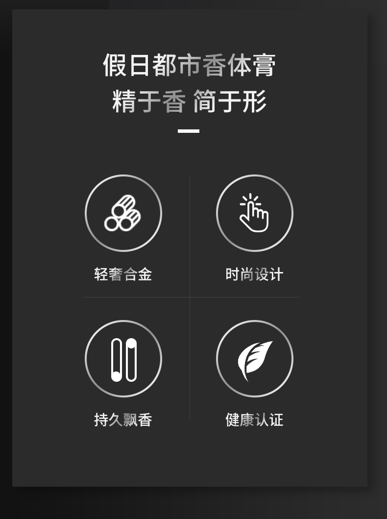 固体香膏,方便,耐用,久留香,一抹淡雅的清香,扁平盒身,顺滑易推,涂抹便捷!