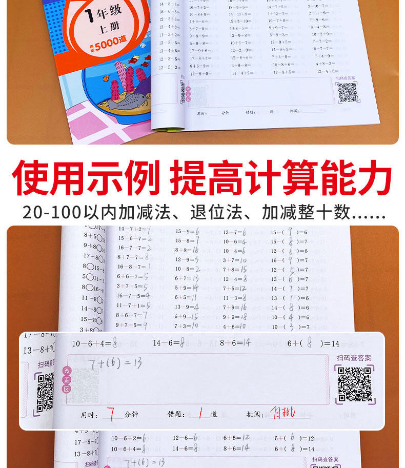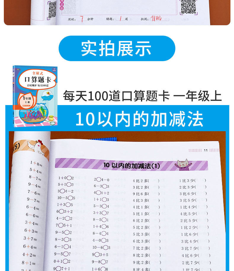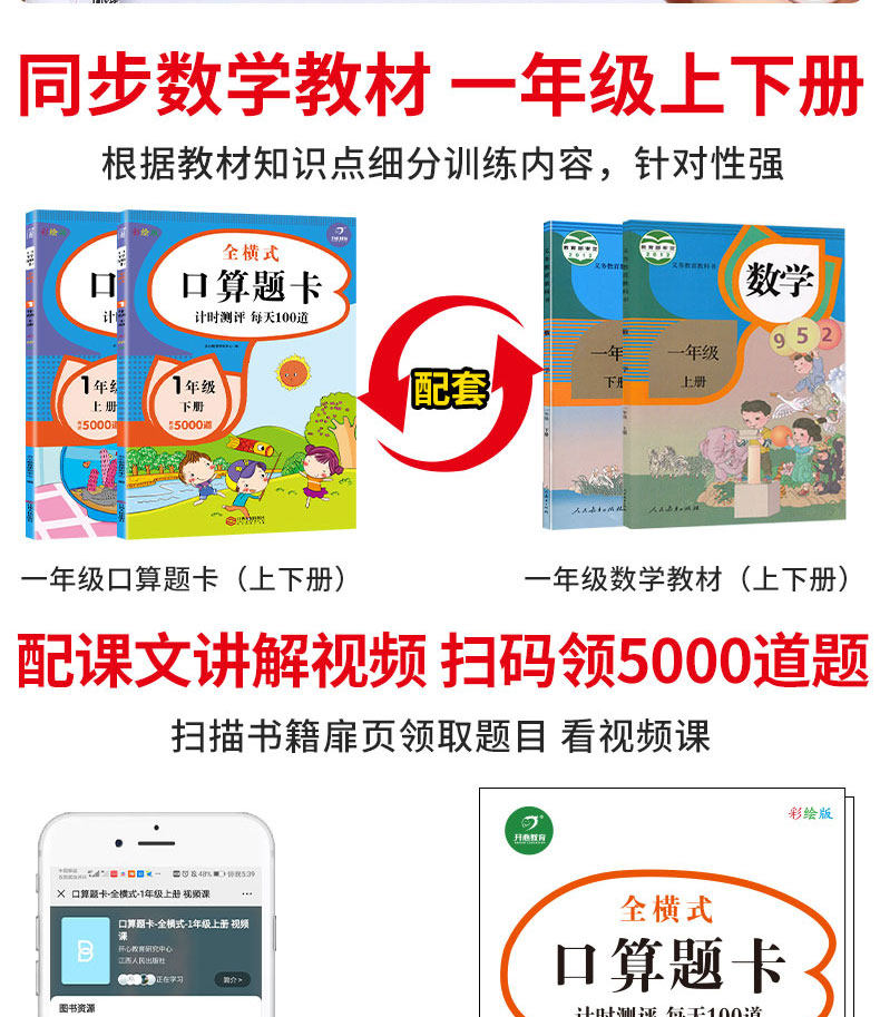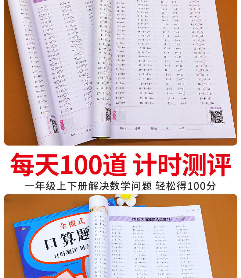 一年级上册天天练同步训练全套,每天一页,100道口算计时训练、坚持打卡,家长批改,记录孩子的用时、正确率,孩子改错,每日都有收获!宝妈速抢~【赠运费险】