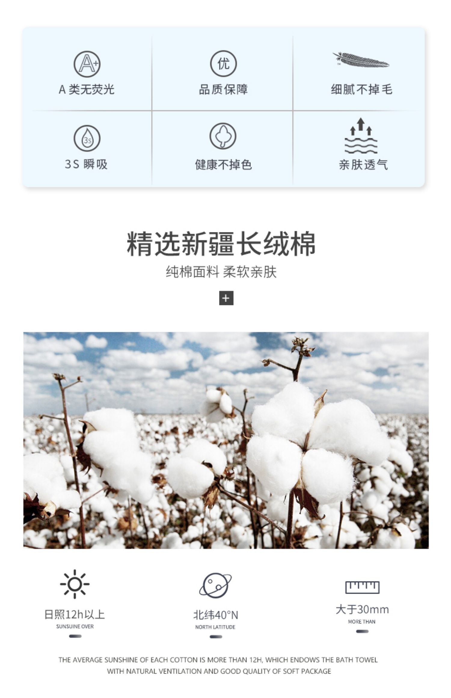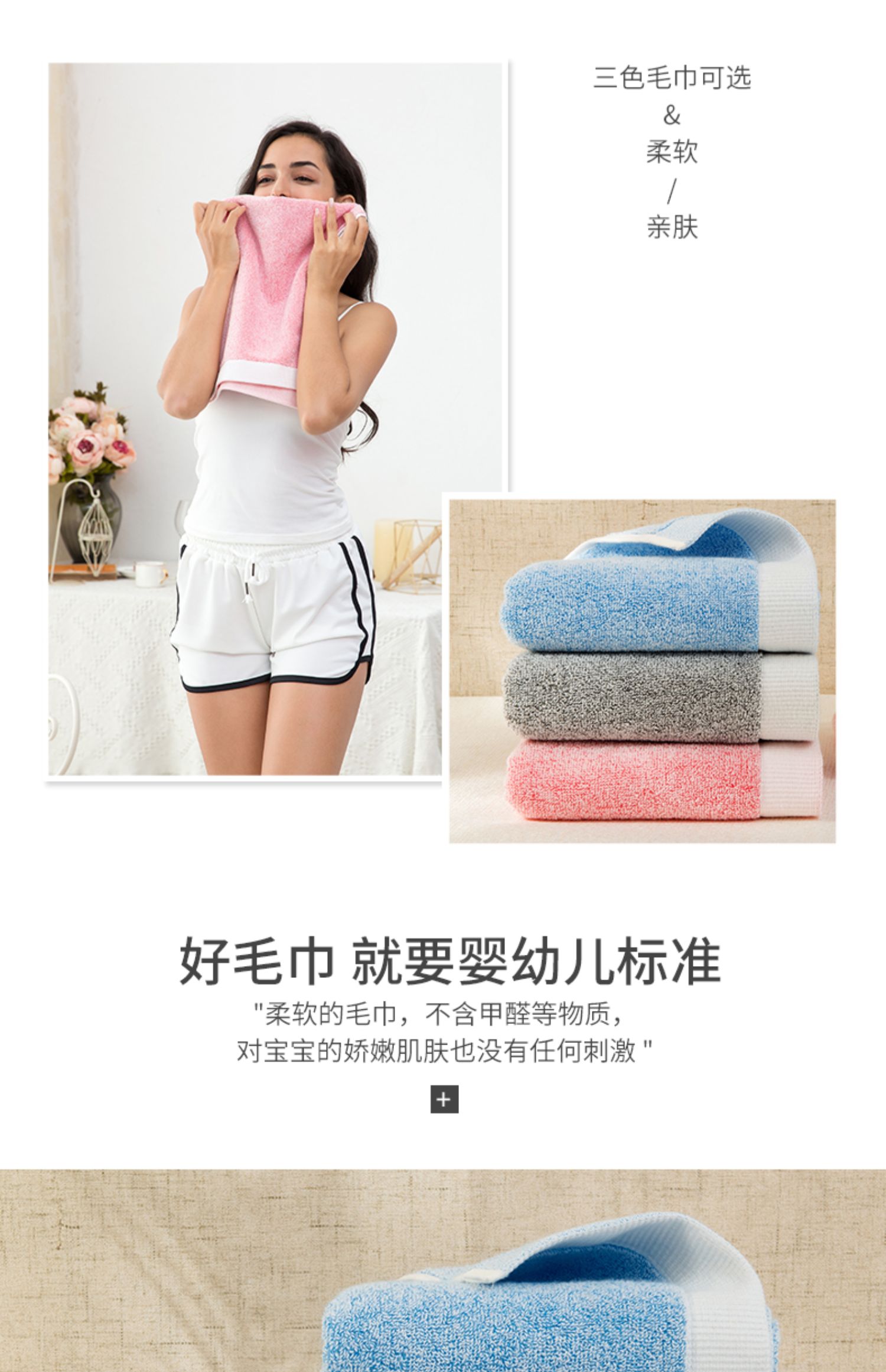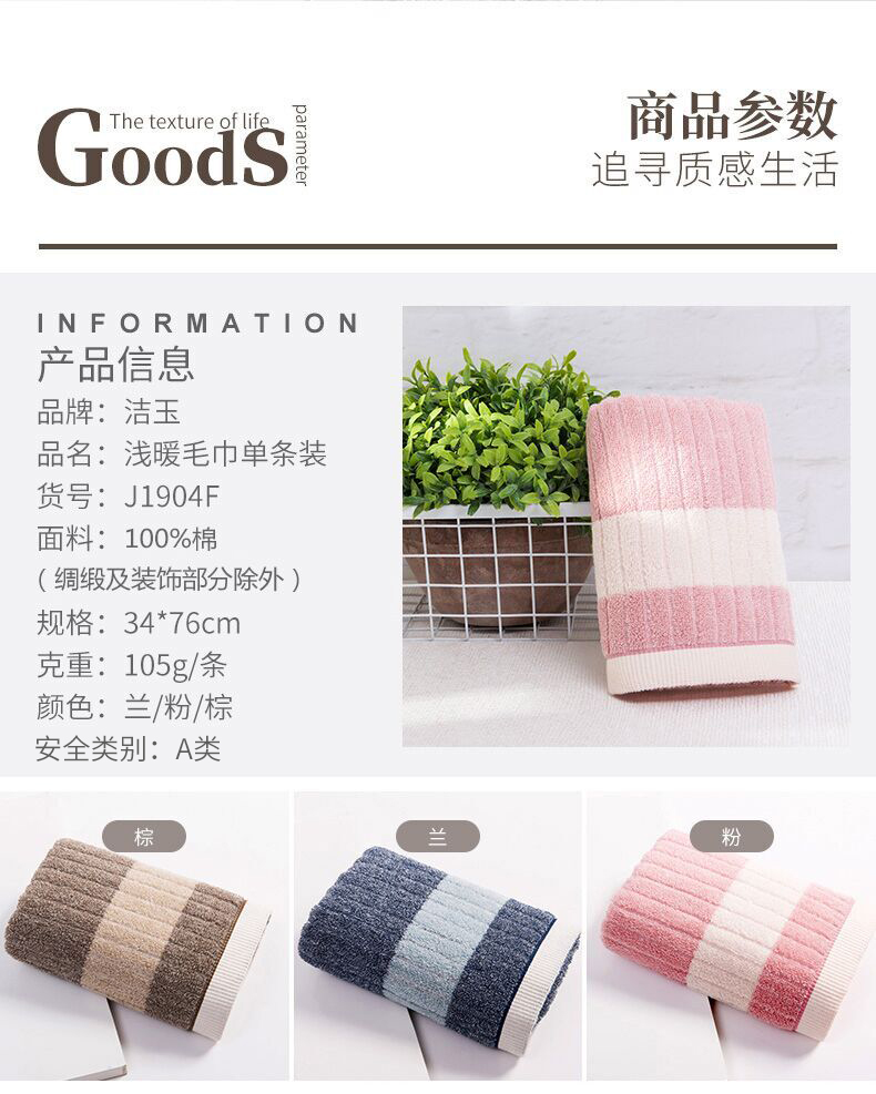 34*76CM孚日集团优质出品,A类品质零添加,不含荧光剂。甄选新疆原生棉,细腻轻柔。宝宝用也完全没有问题!