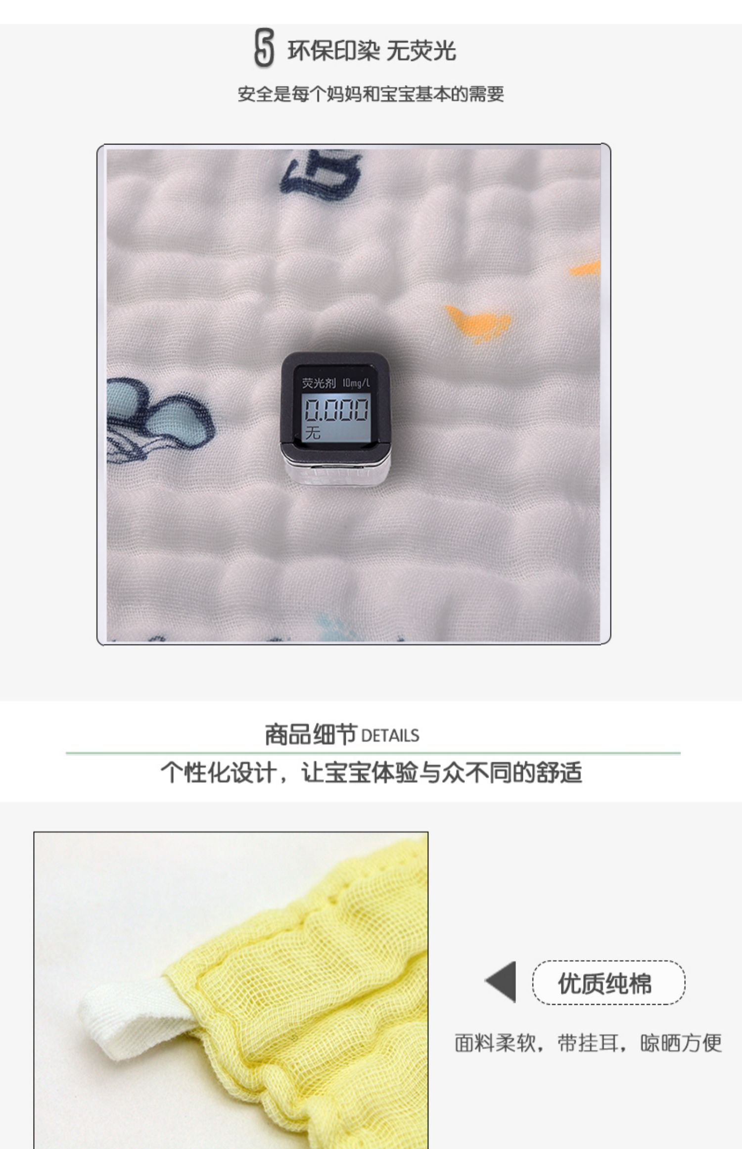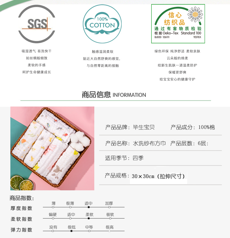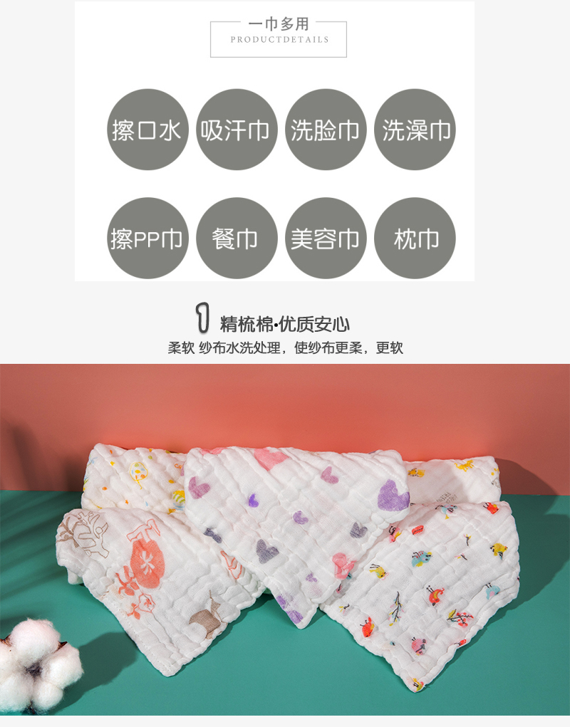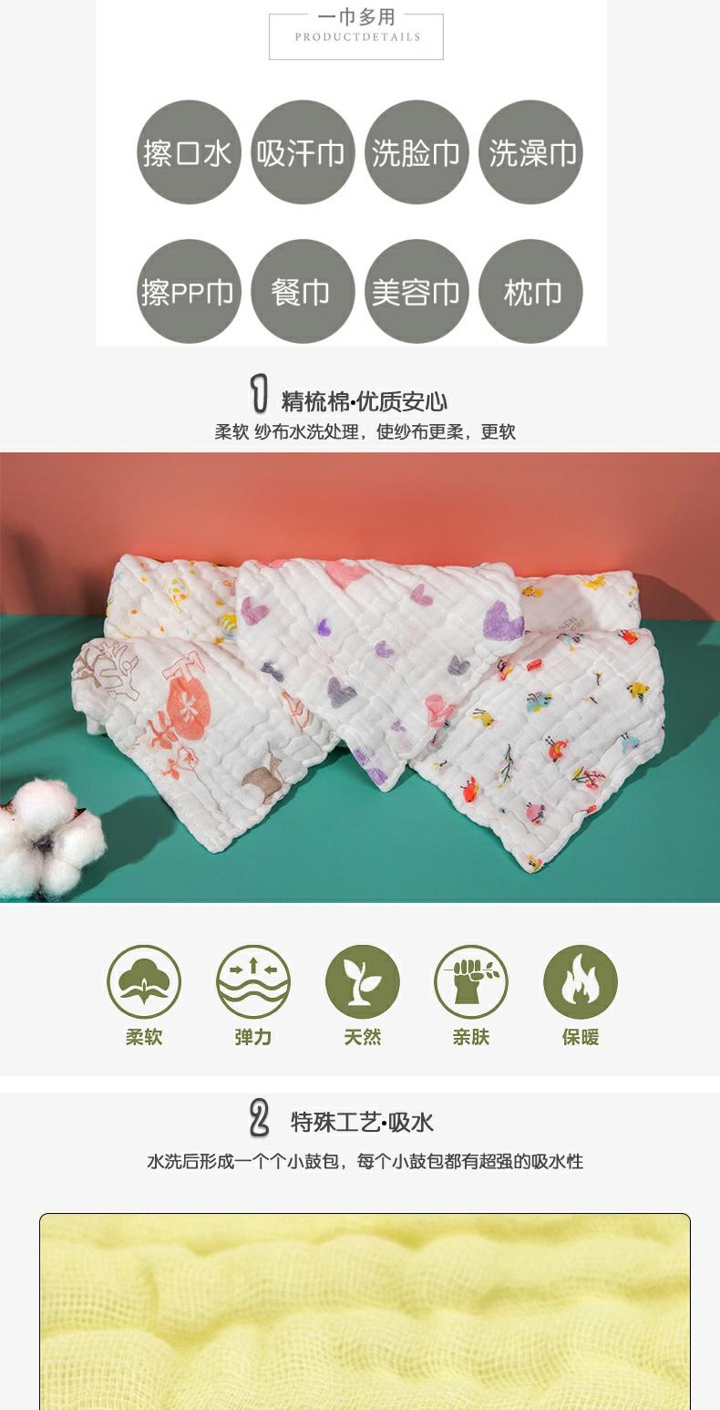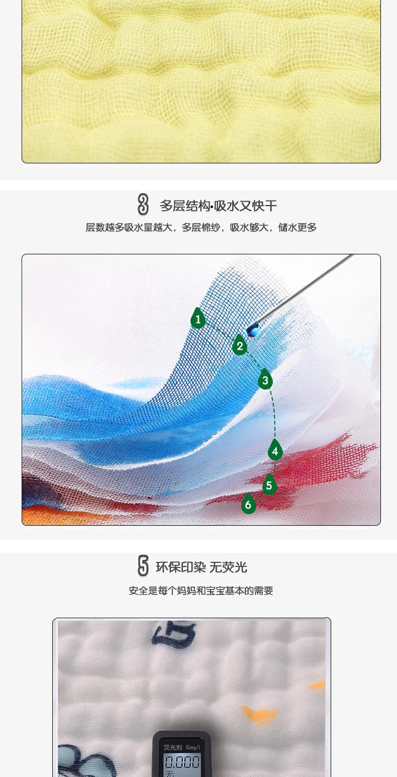 六层纯棉纱布,吸水透气,柔软亲肤,无甲醛、无荧光,1条下来俩三块钱,宝宝擦手擦口水都不错【赠运费险】