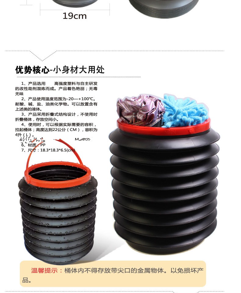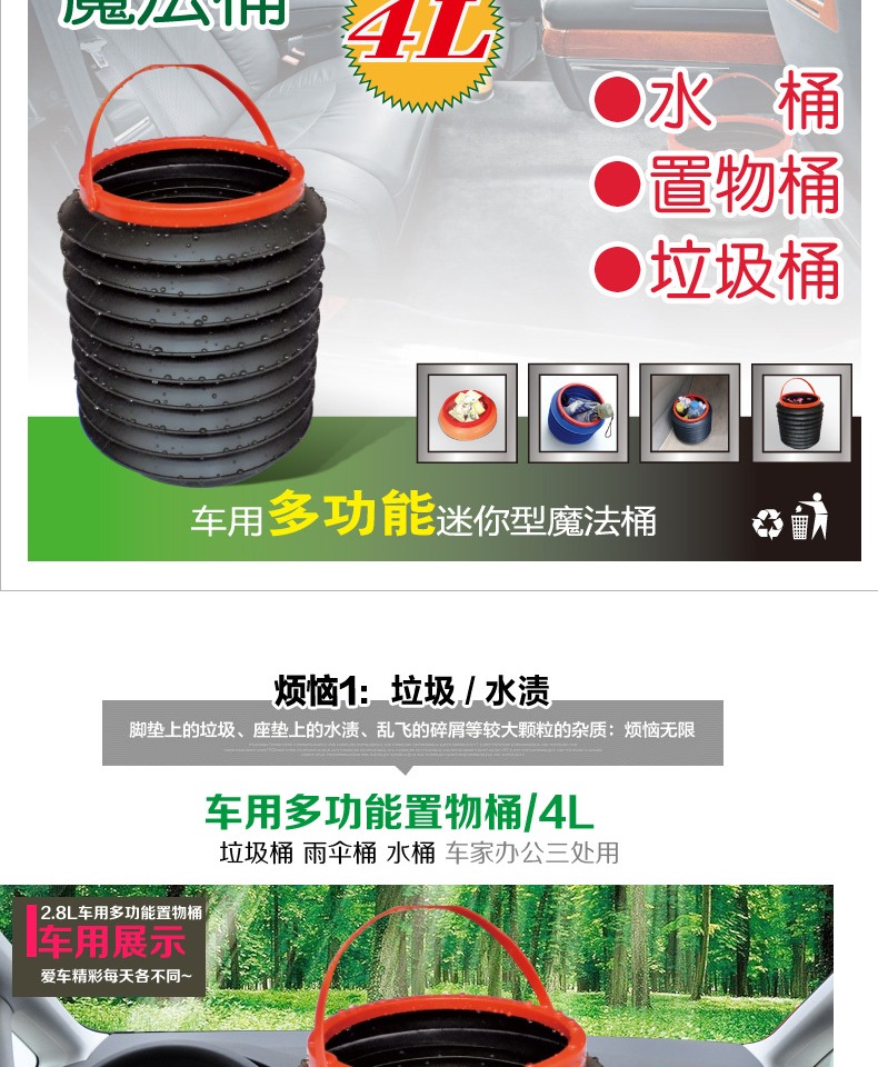 有车一族必备,无车一族必采,一桶多用,非常人性化的设计,可以伸缩折叠,可水洗,一点都不会占位置,轻松解决车内杂物收纳,车载居家户外都非常方便,速度抢!
