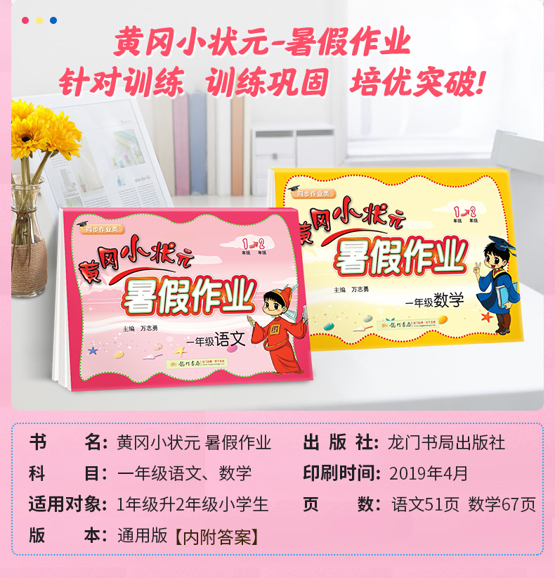黄冈【语文+数学2本装】百所名校特级教师推荐,紧扣教材练点,关注教师讲点,,巩固基本知识,重点突破,纸质优良,,科学合理安排假期生活,暑假斜接,轻松赢在起跑线~随机送各类书籍!