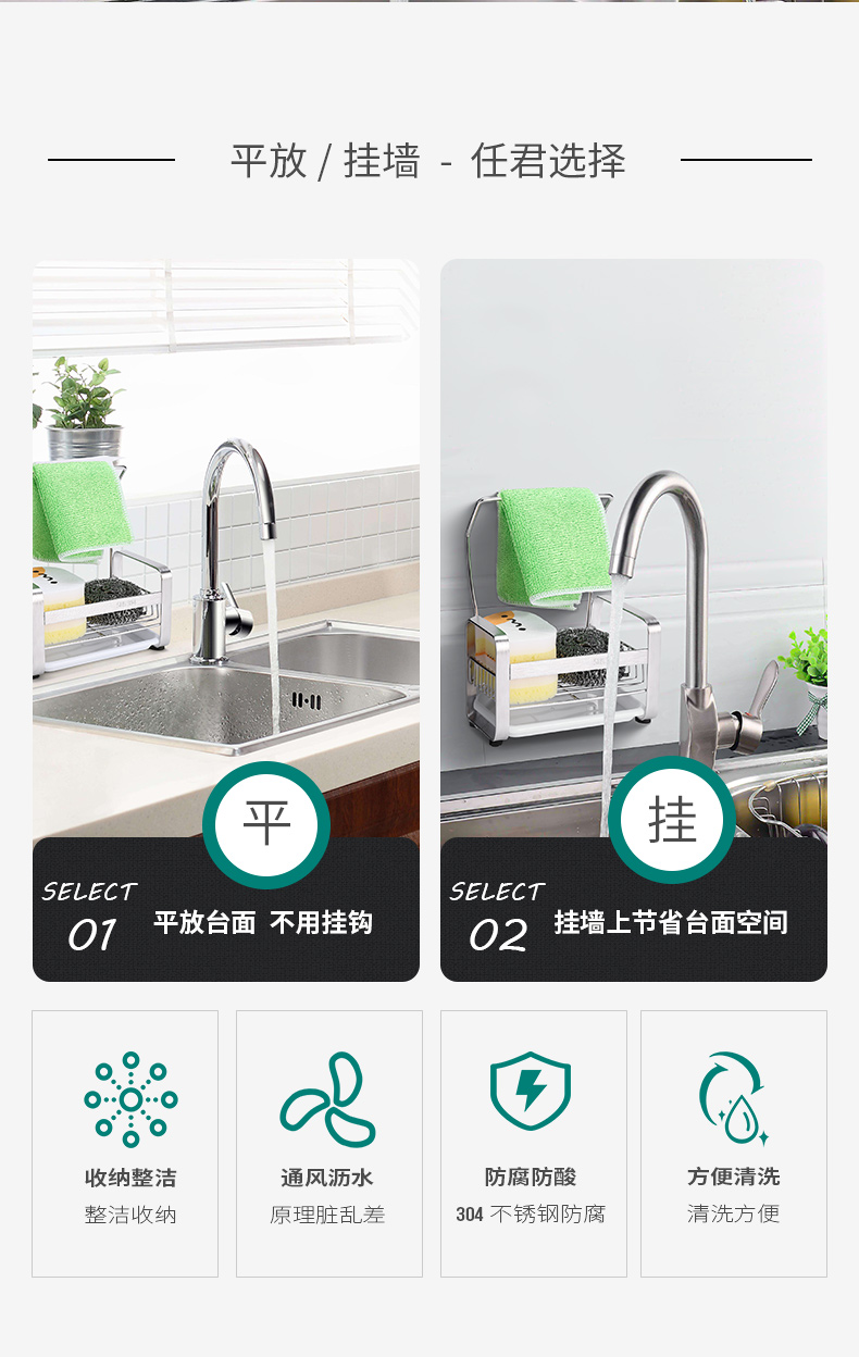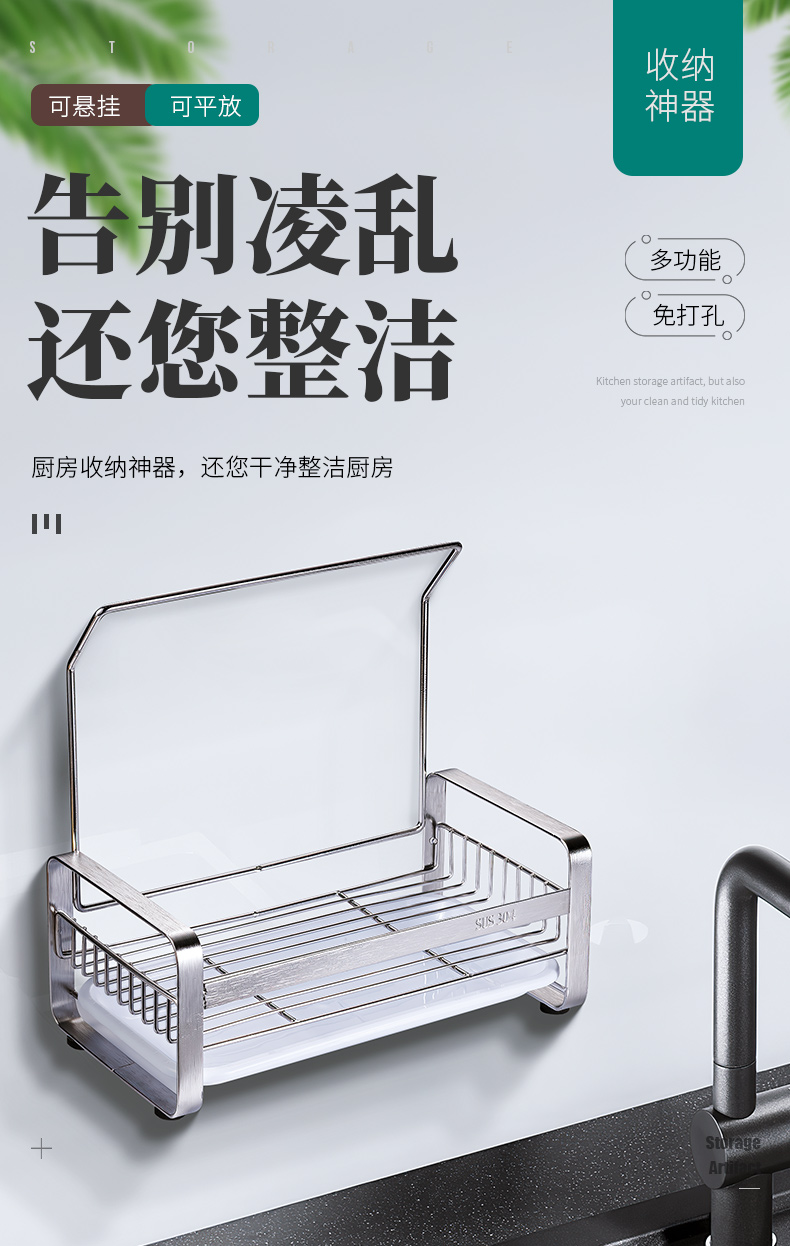 【304不锈钢】厨房收纳神器!多功能免打孔水槽置物架,告别凌乱,还您干净整洁厨房~结实耐用,平放挂墙都可以!【赠运费险】