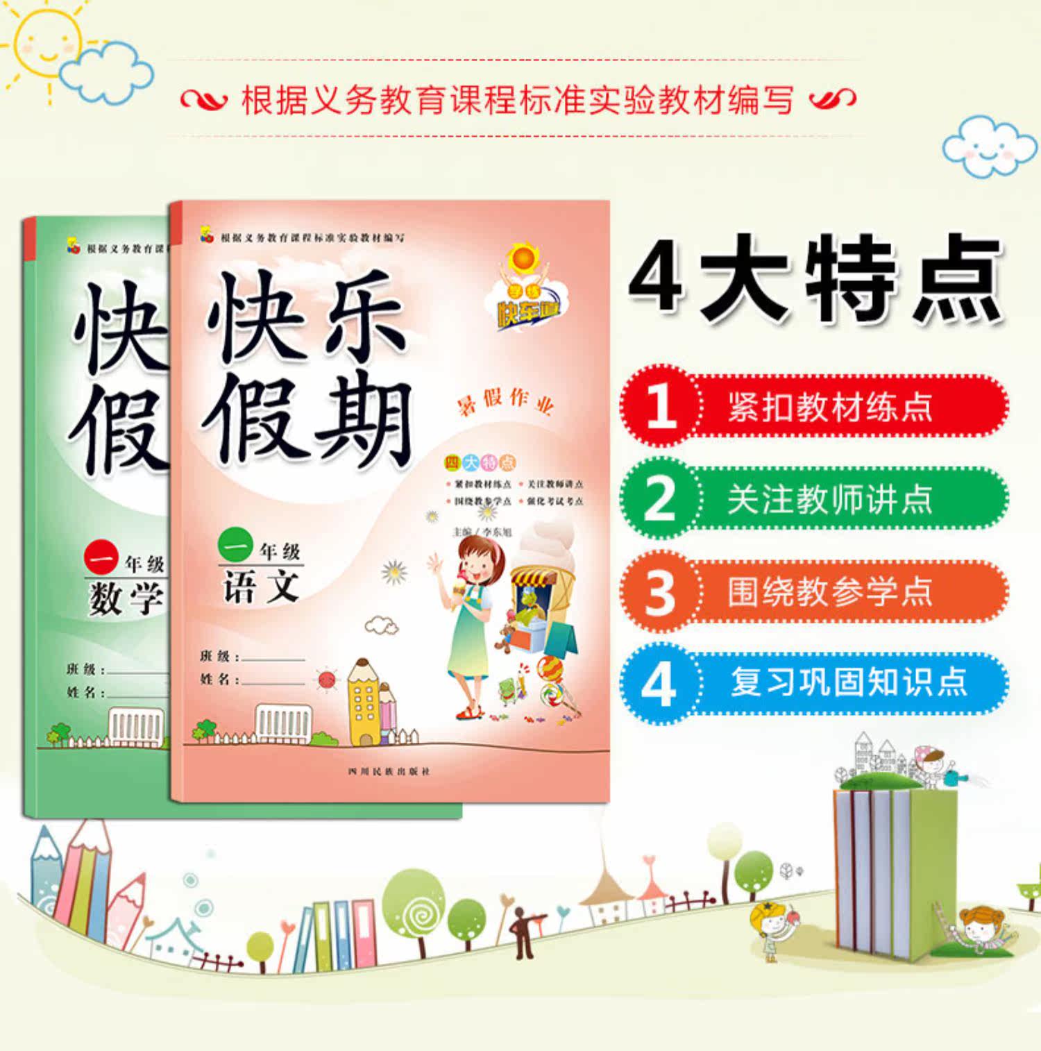 【赠作文书1本】假期快乐练暑假作业,一年级语文+数学人教版全套2本,家庭作业本假期辅导书,衔接教材训练培训练习测试题,班主任推荐,打破教育门槛。
