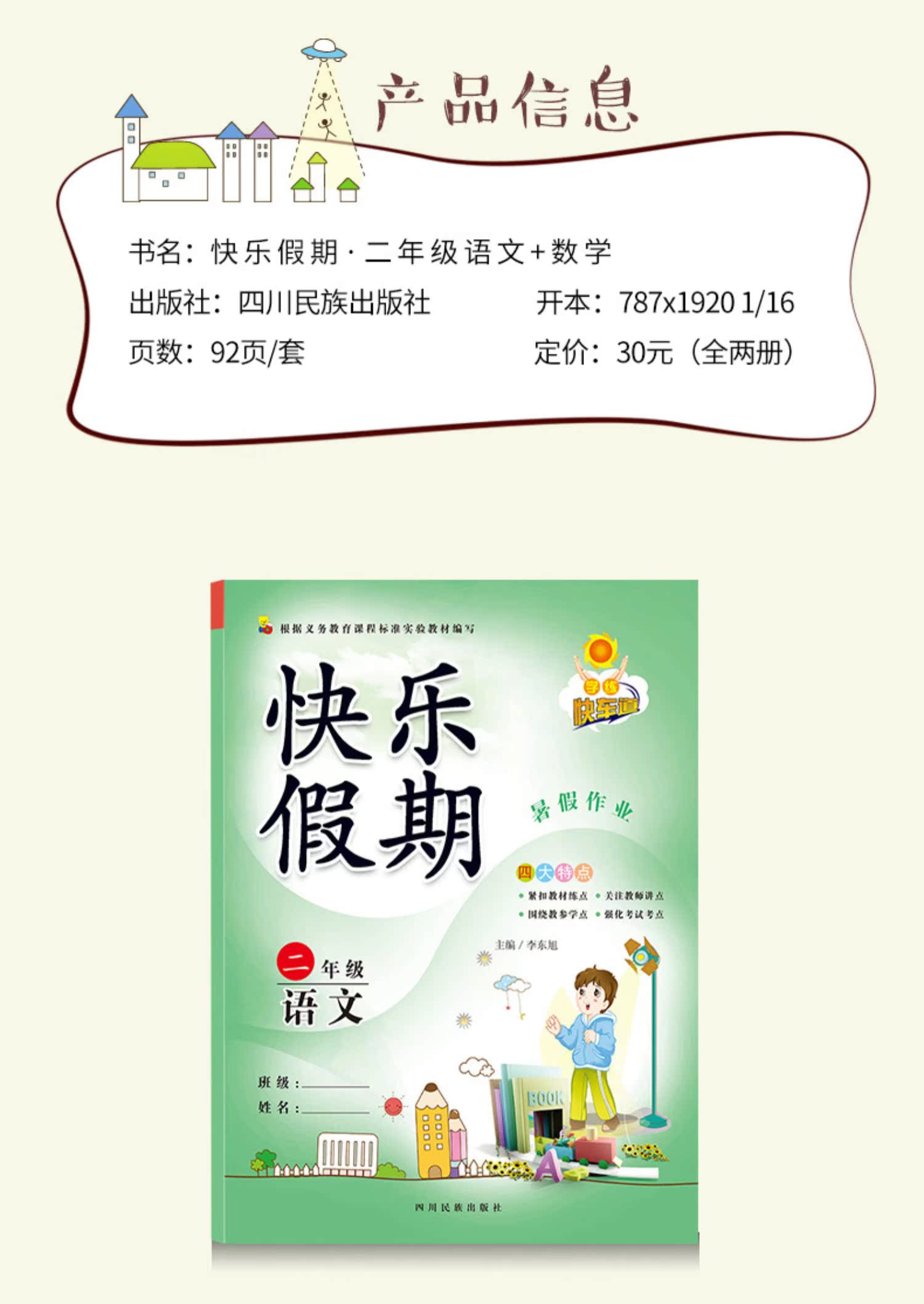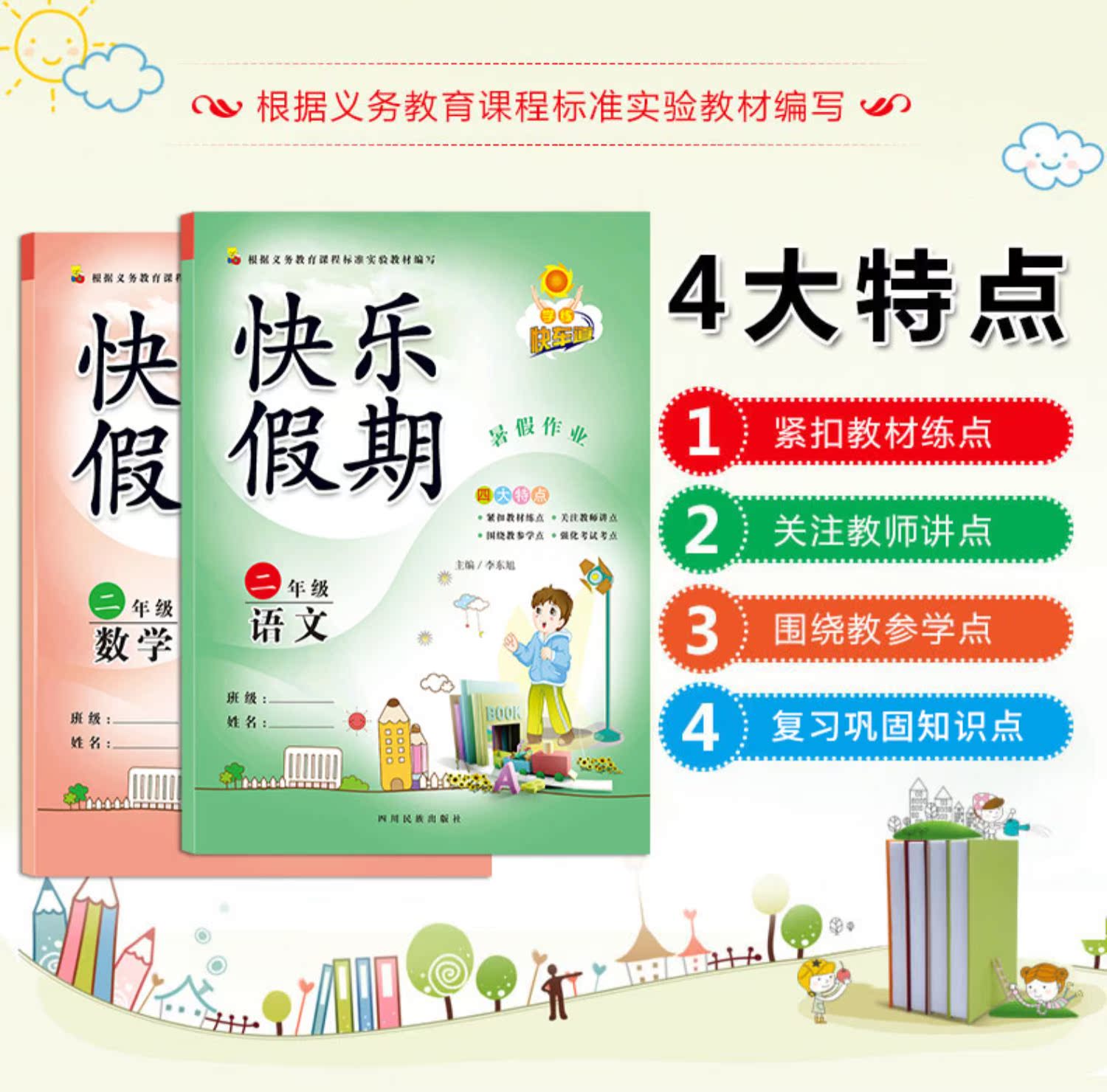 【送试卷2本】假期快乐练暑假作业,2年级语文+数学人教版全套2本,家庭作业本假期辅导书,衔接教材训练培训练习测试题,班主任推荐,打破教育门槛。