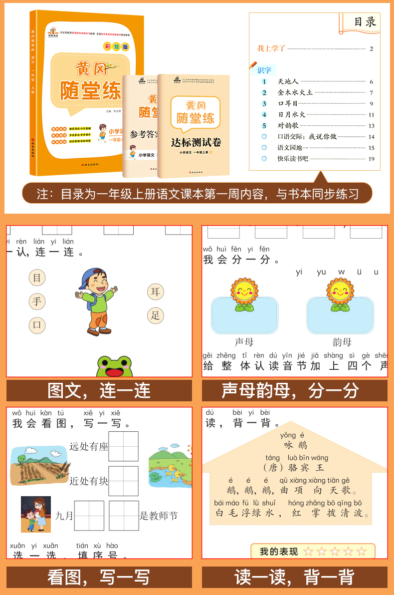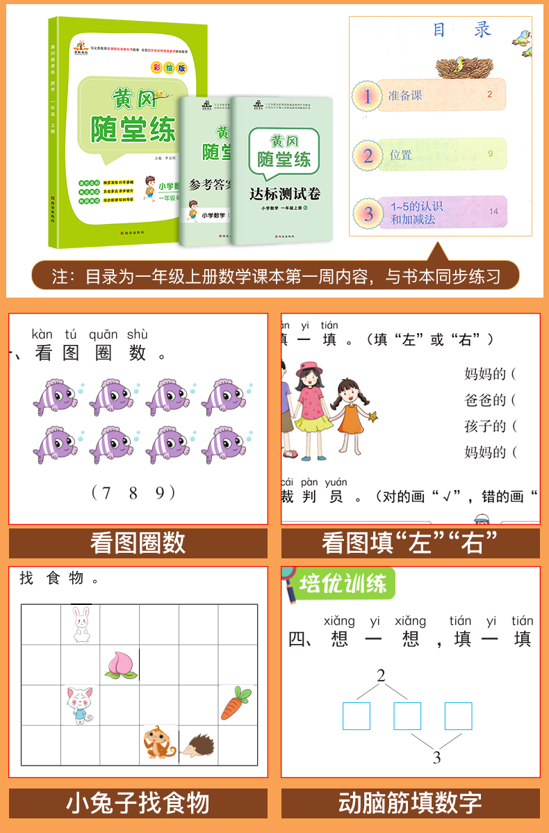 【送2本同步测试卷+参考答案】全新人教版黄冈随堂练一年级上册语数2本,同步天天练同步课时作业。亏本3000套,剁手党快出手,手慢无。