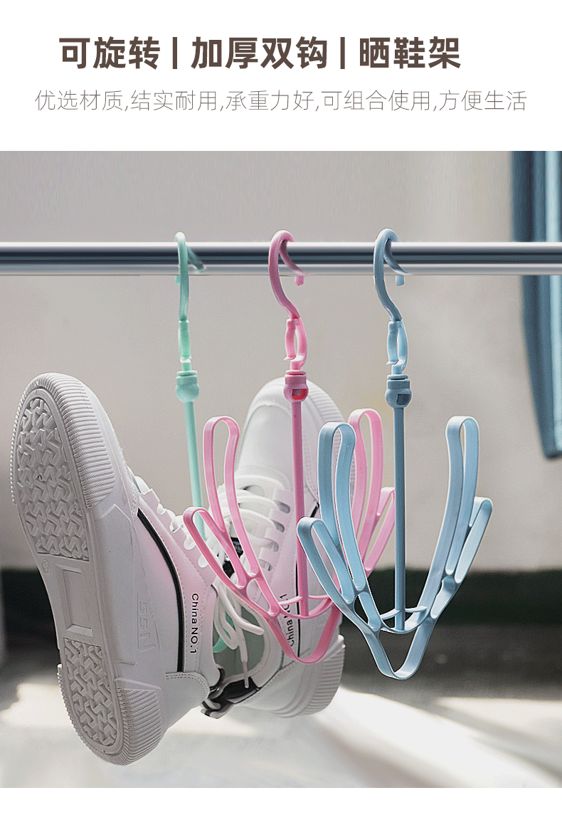【秒杀3个4.8!6个6.8!9个8.8!】优质PP材质,承重力好,多功能晾晒,晒鞋晒衣轻松解决,双挂钩设计,便于悬挂晾晒,360°旋转,晒东西您想怎么晒就怎么晒!居家必备!多色可选【赠运费险】