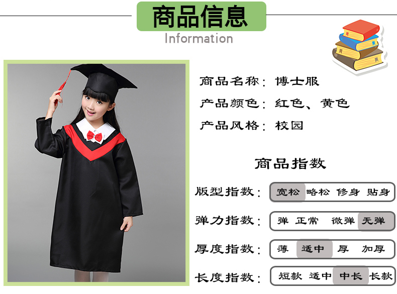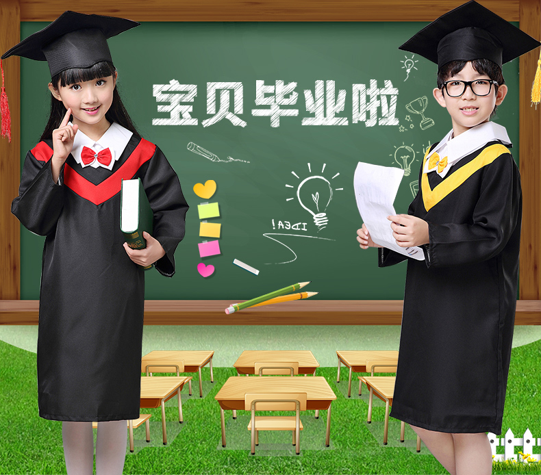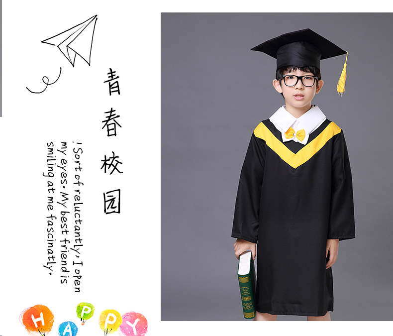 【送毕业证和帽子】儿童表演服装,儿童毕业季博士服,参考身高110-160cm!背部系带设计,穿着方便安全,青春进行时。【赠运费险】