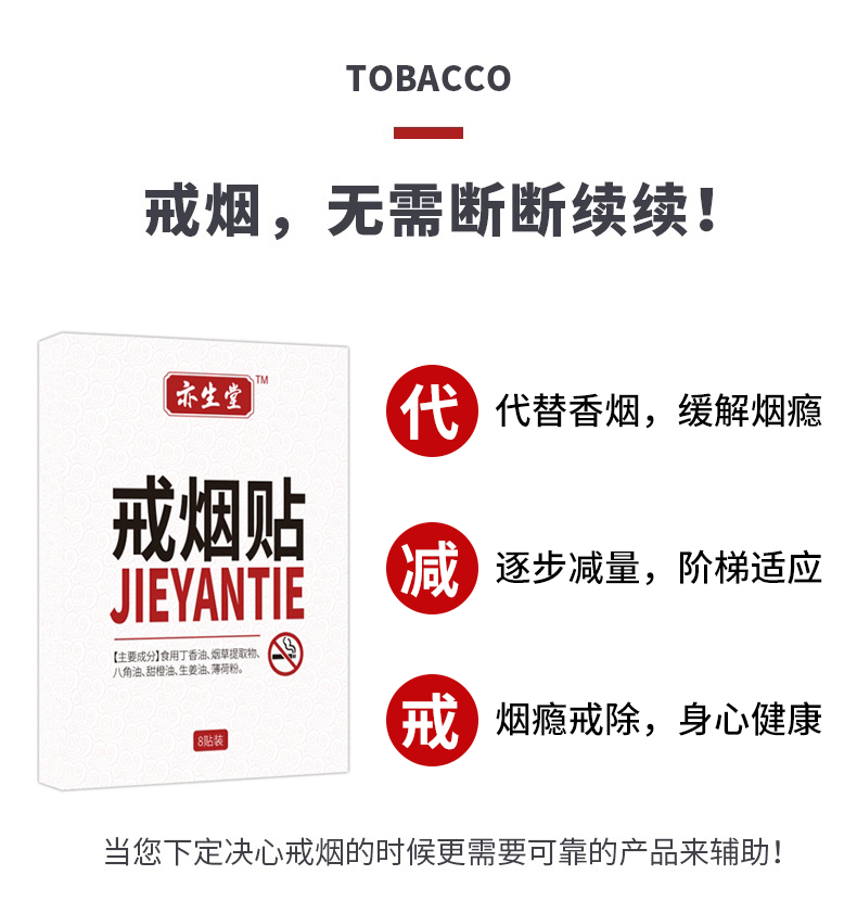 科学戒烟,脱瘾戒烟,植物萃取,温和健康,一贴即用,24小时有效,让老公戒烟不再痛苦难忍~