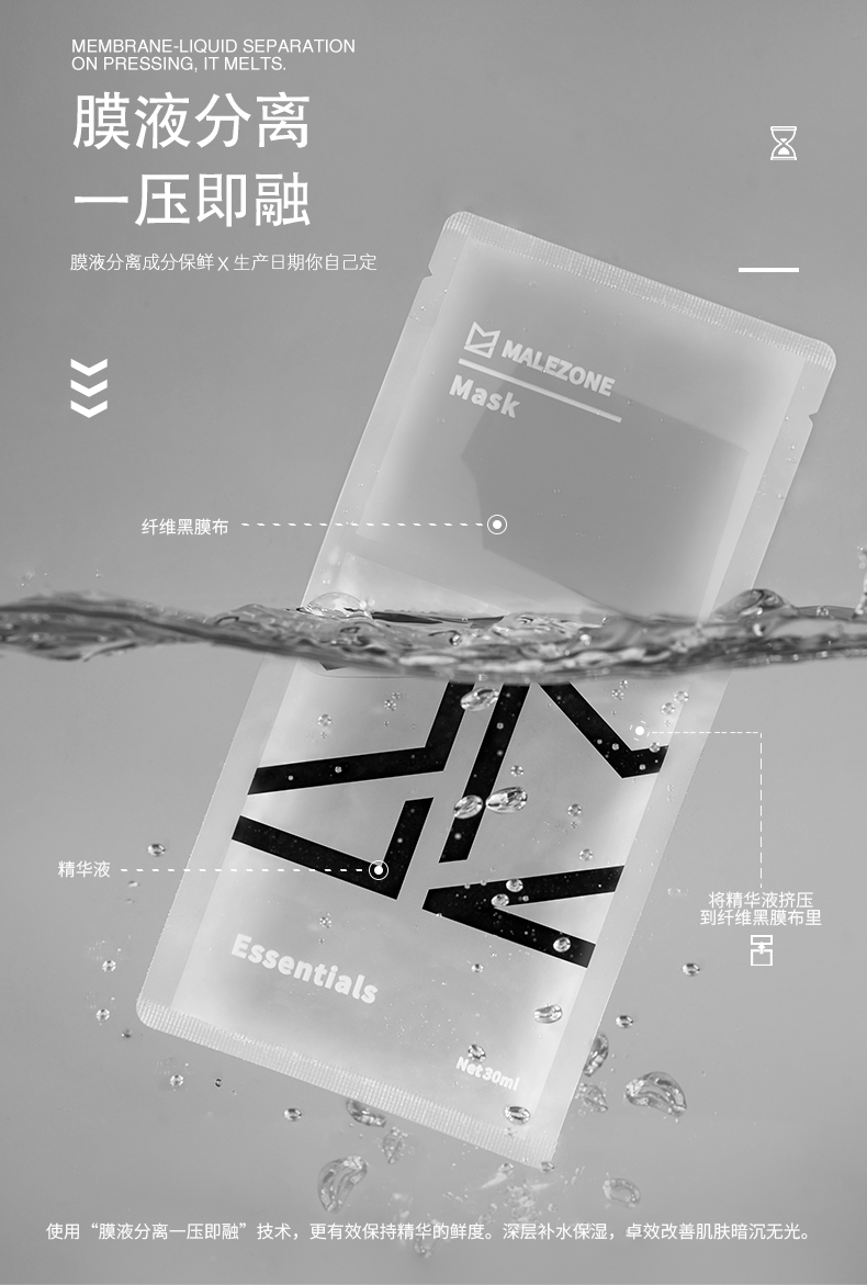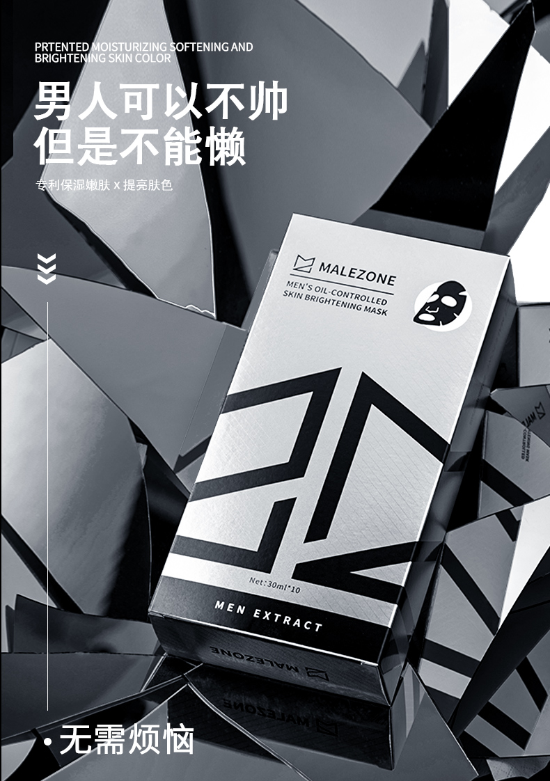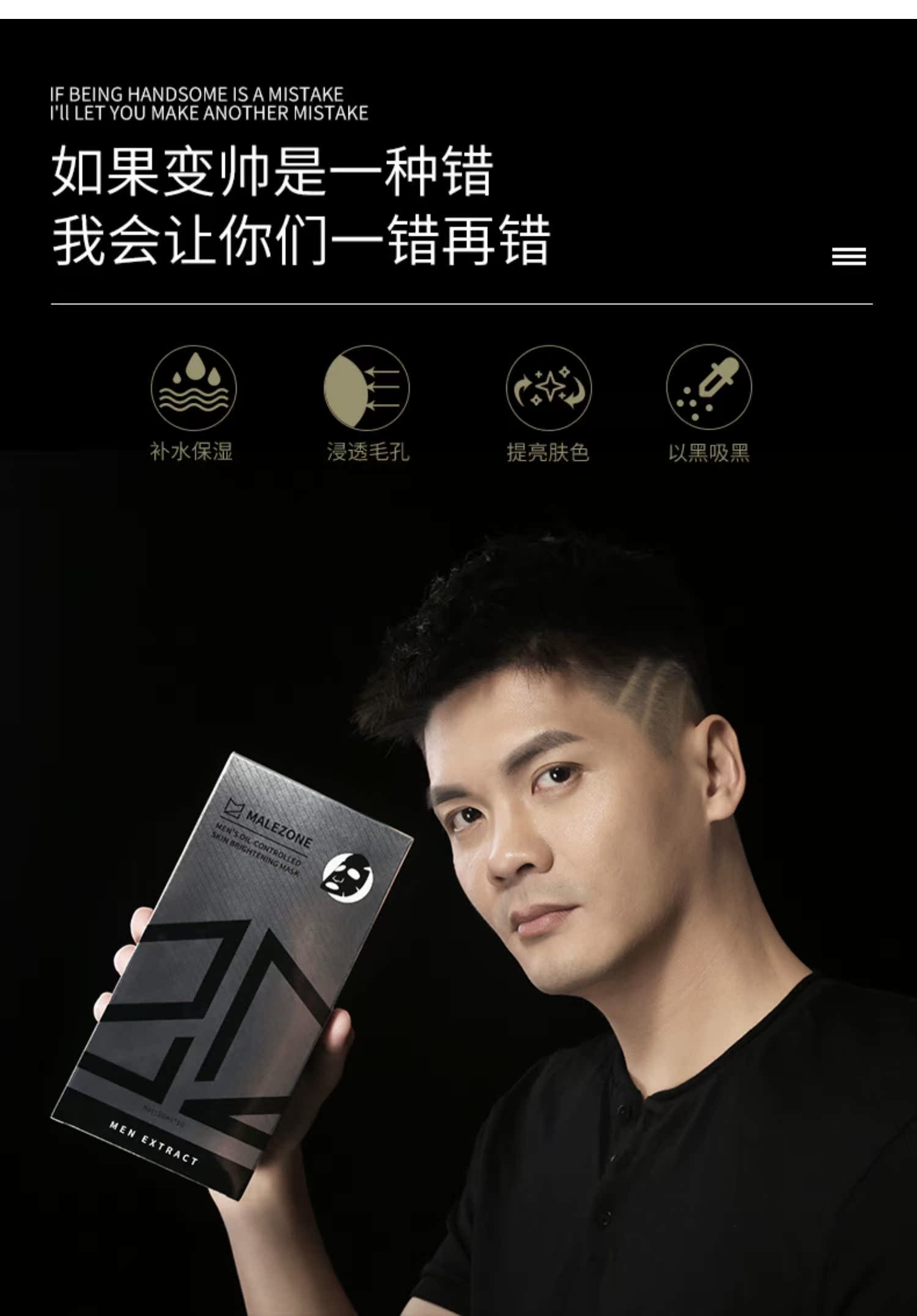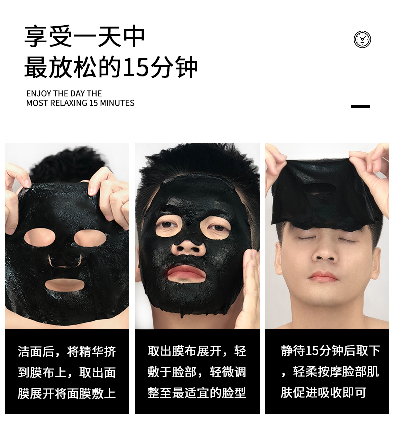 美丽值男士面膜,专为男士肌肤定制,膜液分离技术,成分保鲜,蕴含竹炭萃纤维黑,以黑吸黑,触感清爽不粘腻,深层清洁,净质毛孔,扫除油光,控油补水,保湿淡化痘印,能够留住肌肤水分。