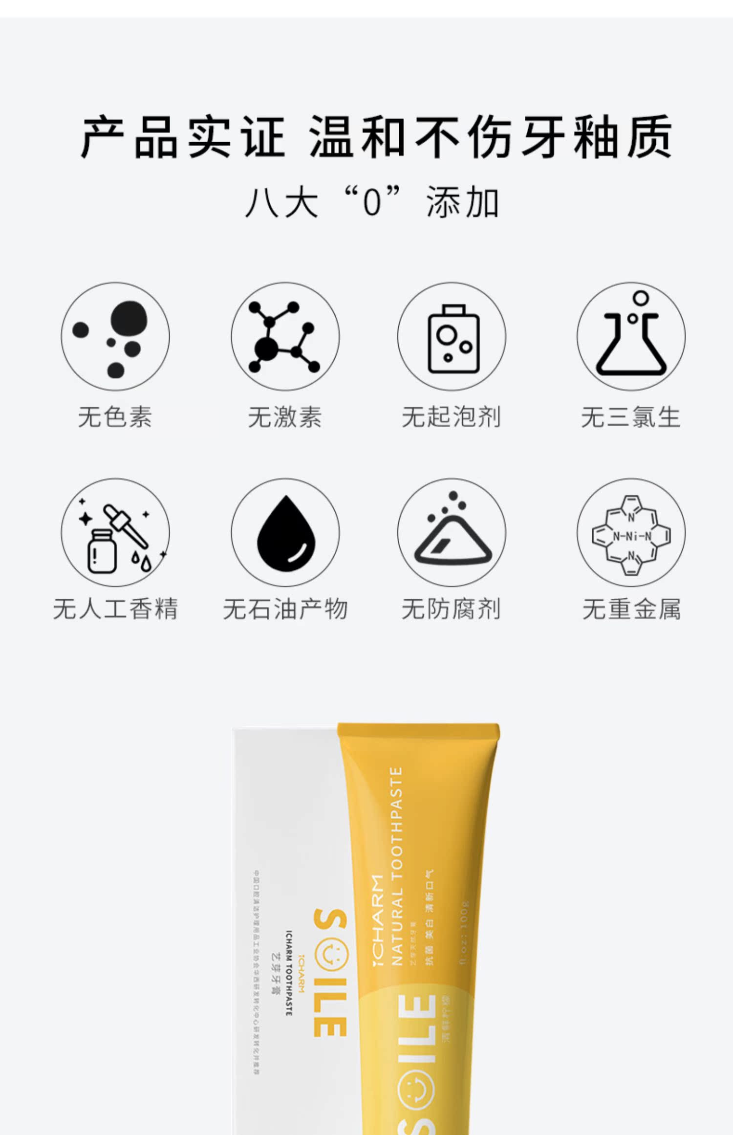 icharm艺芽牙膏去黄牙垢亮白牙齿 健康美白,清新口气,三种口味任选,品尝自然味道,加入天然植物份不伤害牙釉质。
