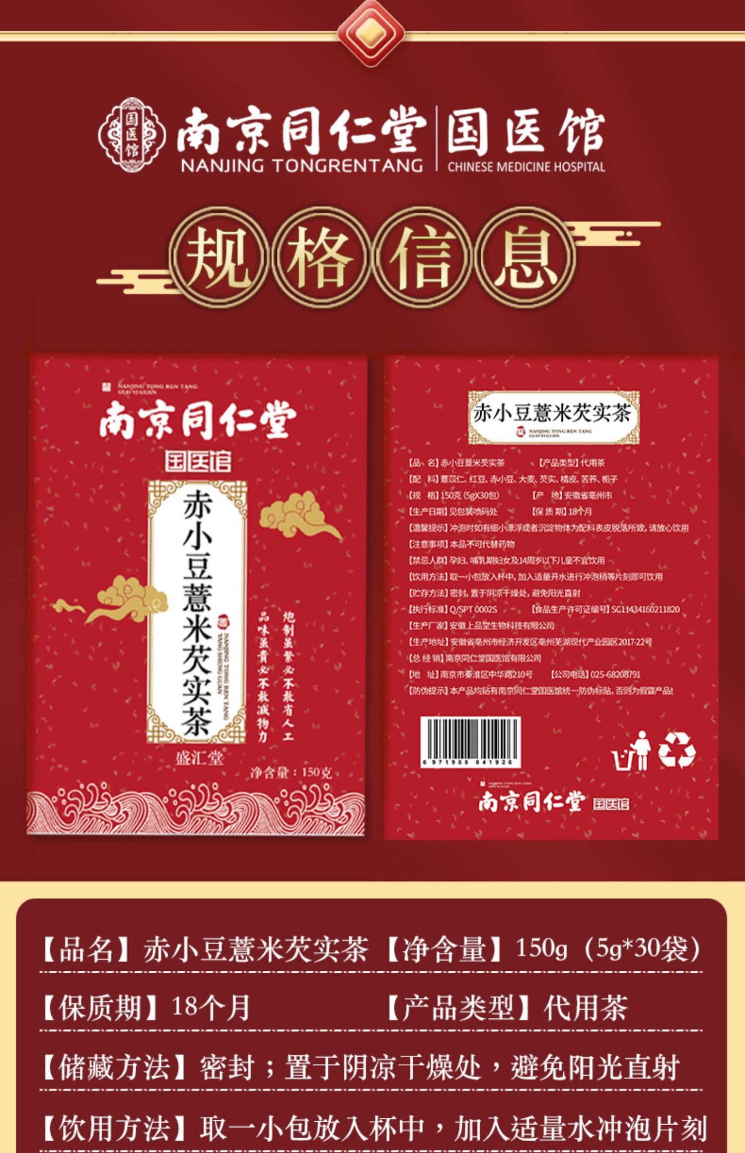 百年同仁堂盒装红豆薏米茶,精选八种食材搭配而成,低温烘培,茶味醇厚持久,调节身体,赶走湿胖,携带方便,即泡即饮,老少皆宜,强身养颜。