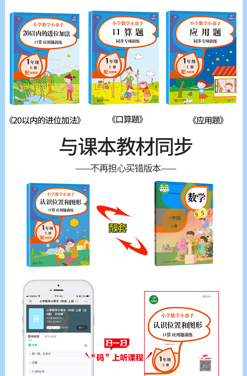 【随机发一本】小学数学专项训练,一年级上册,超值6本装,同步人教版数学教材,彩绘注音版,有效分类训练,全面解析,专项训练,让孩子赢到起跑线上