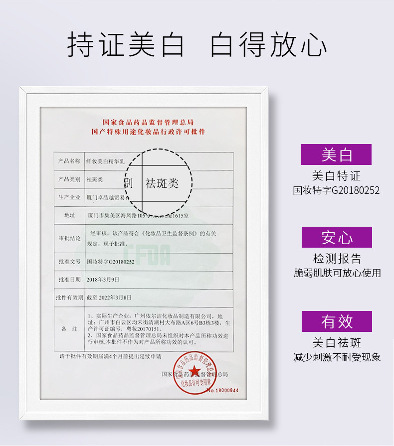 【莱莉诗】持证美白精华乳液