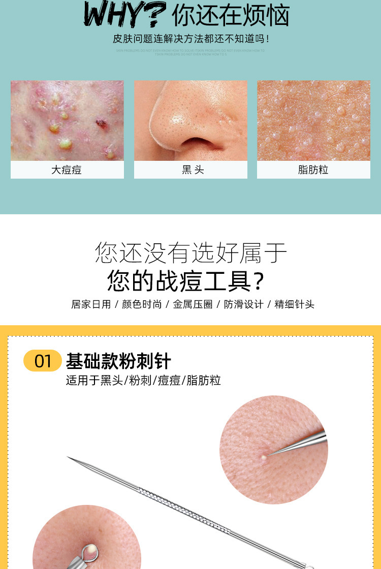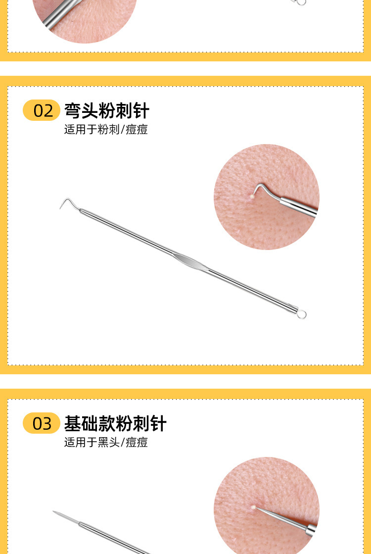 高品质去黑头粉刺套装,专业美容师工具,适用于脸部痘痘、粉刺、脂肪粒等顽固部位,挑破挤压面颊不留痕!