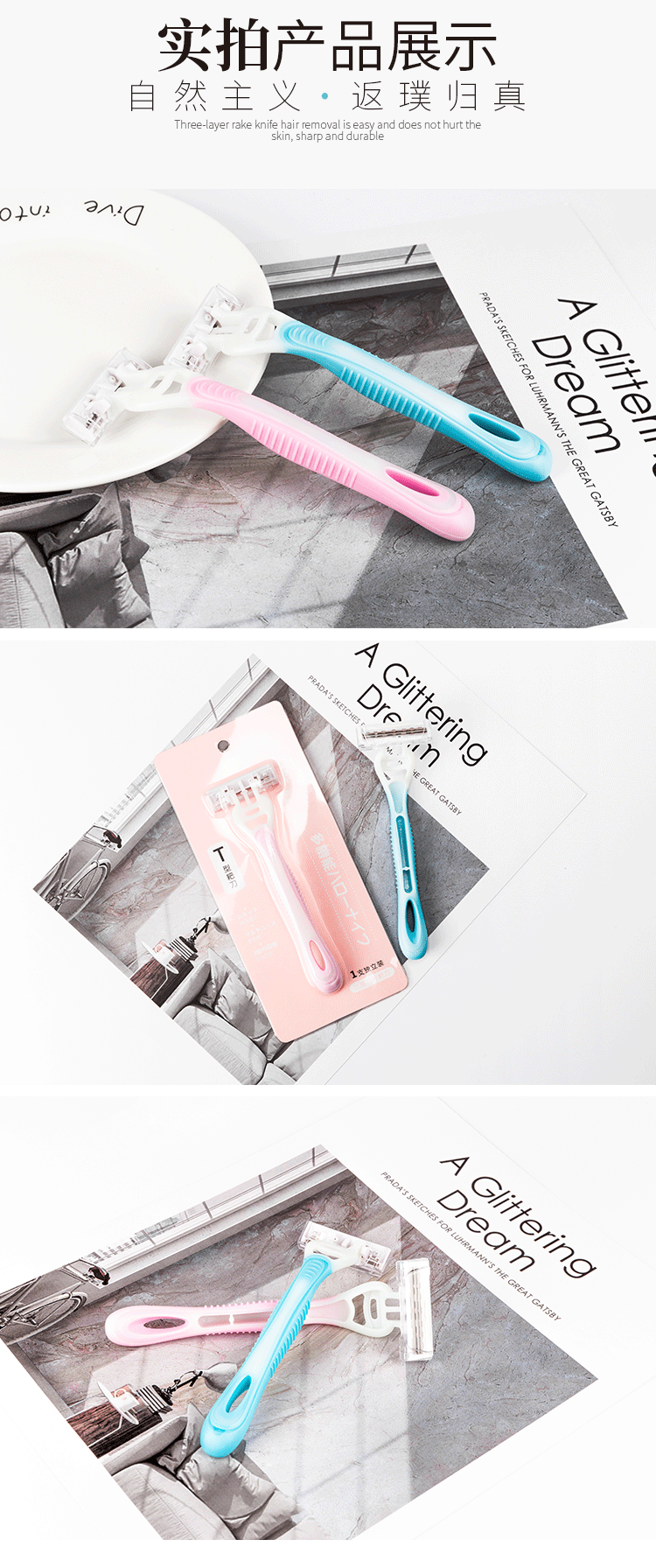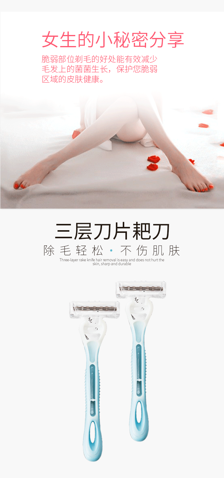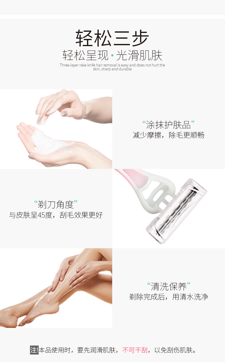 【收藏加购送消毒湿巾】新型贴心设计,起毛挡板,防滑握柄,进口超薄刀片,锋利耐磨,芦荟润肤,除毛清洁到位,各处适用,一把搞定,助女神美肌展现!