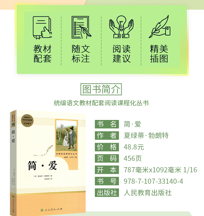 初中必备简爱书籍正版原著人教版,初高中学生课外小说,世界文学名著,大开本,精美插图,教材配套,随文标注,老师推荐必备!!