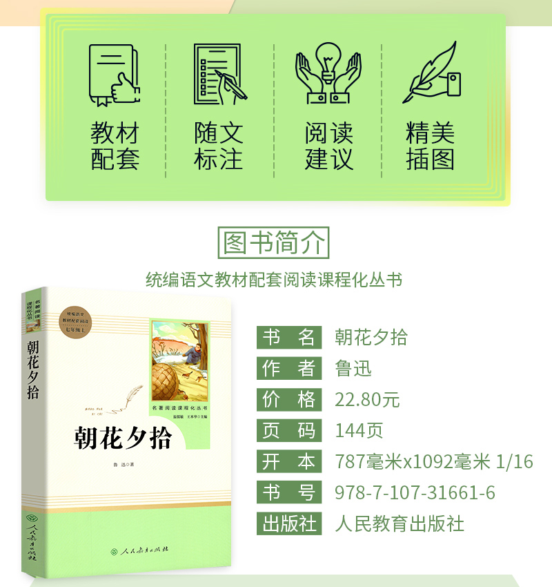 正版朝花夕拾鲁迅原著人教版,初高中学生课外小说,世界文学名著,大开本,精美插图,教材配套,随文标注,老师推荐必备!!