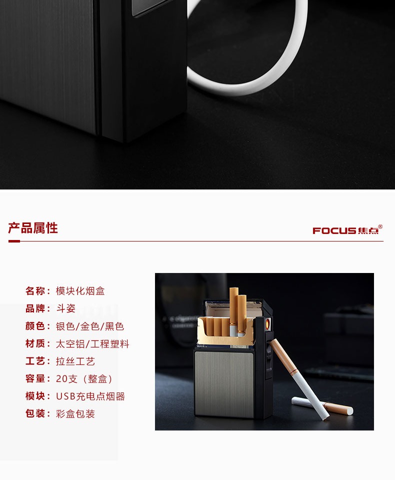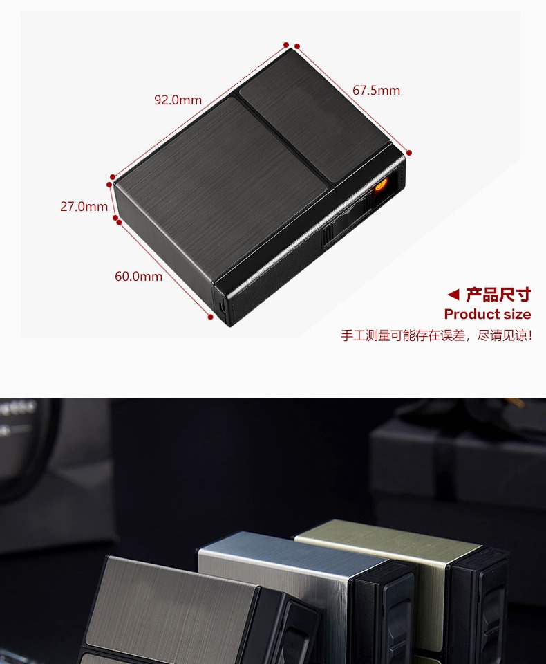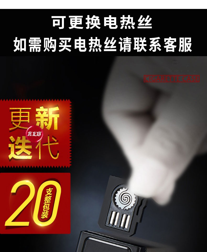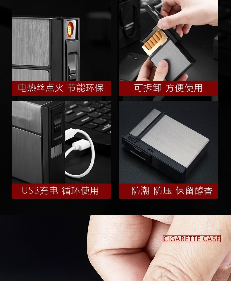 创意铝合金烟盒充电打火机一体个性,20支装整包装防风电热丝点烟器 【券后价】6.8元