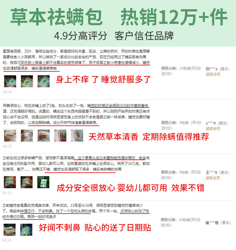 【超值5包】草本植物除螨,安全有效更健康,孕婴适用,皱避螨虫率达百分百,不给螨虫作案的机会,享受品质无螨的生活~【赠运费险】