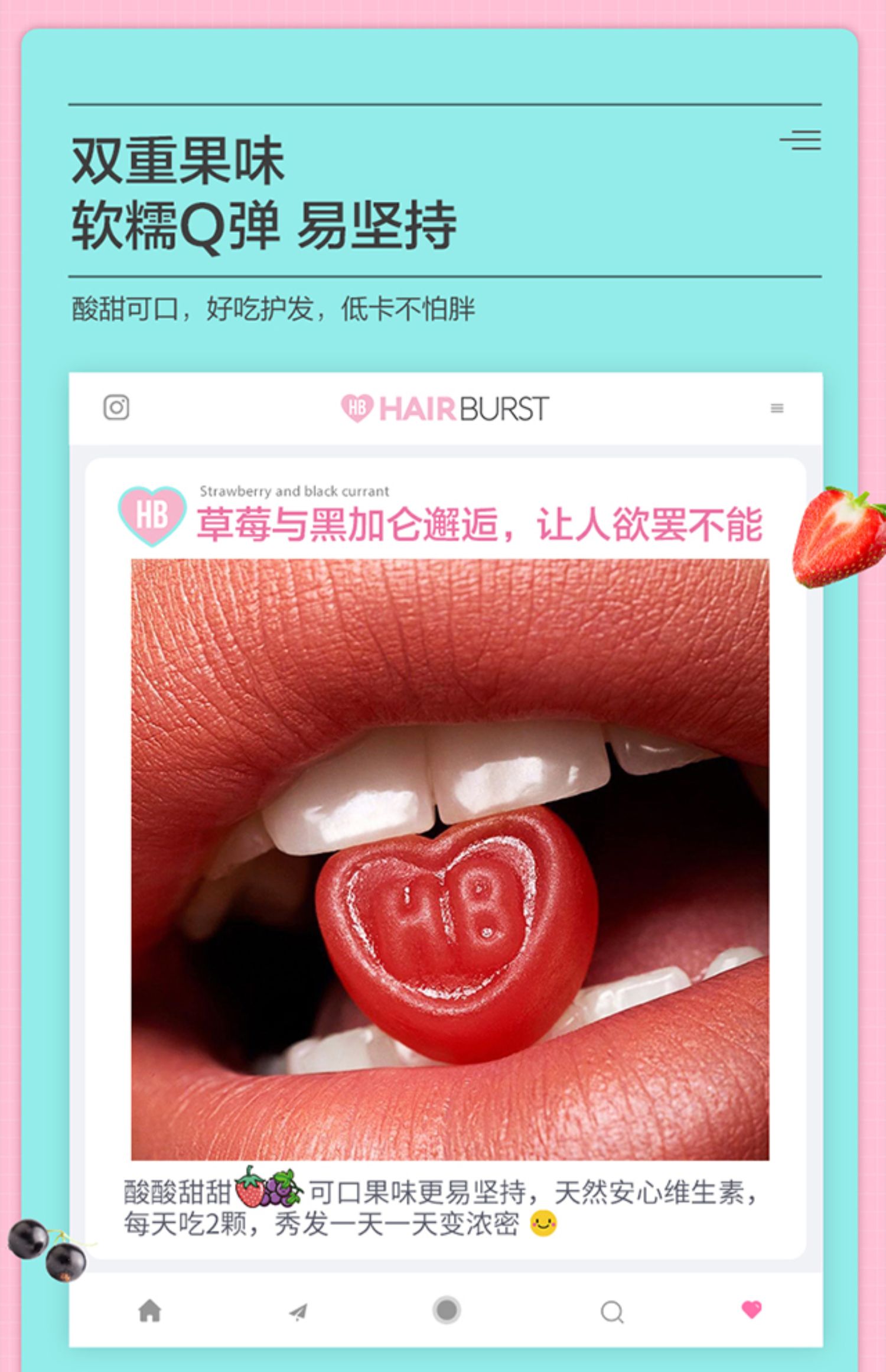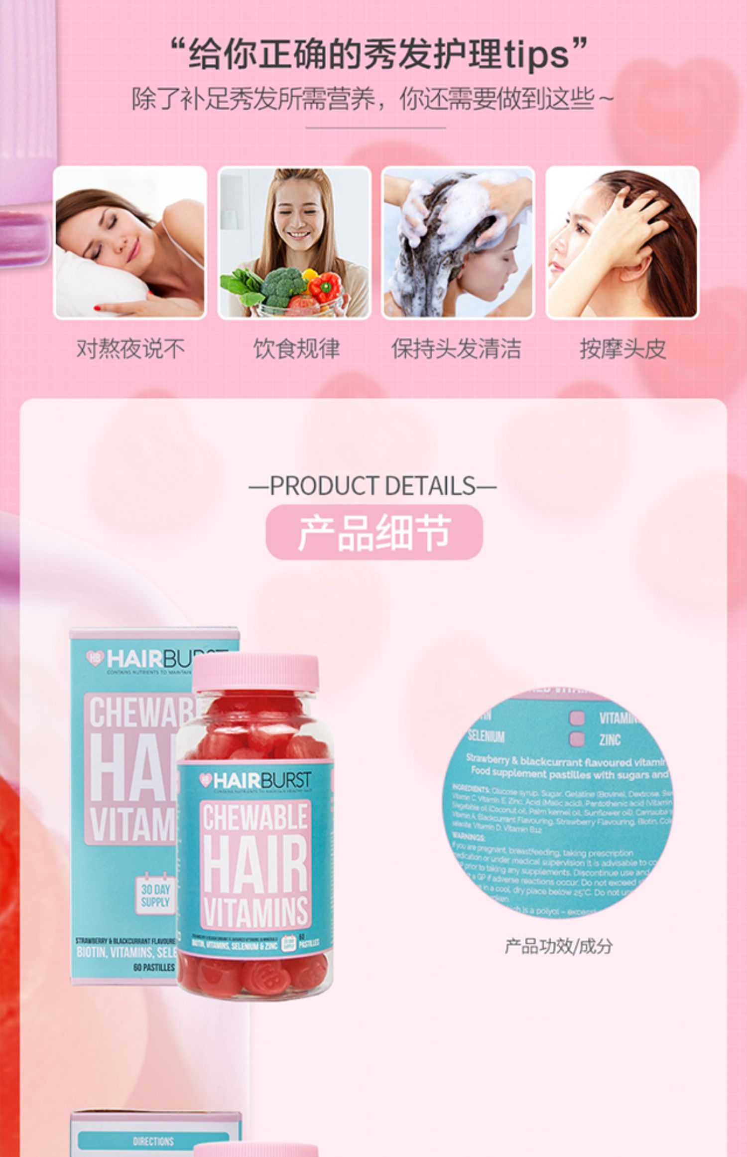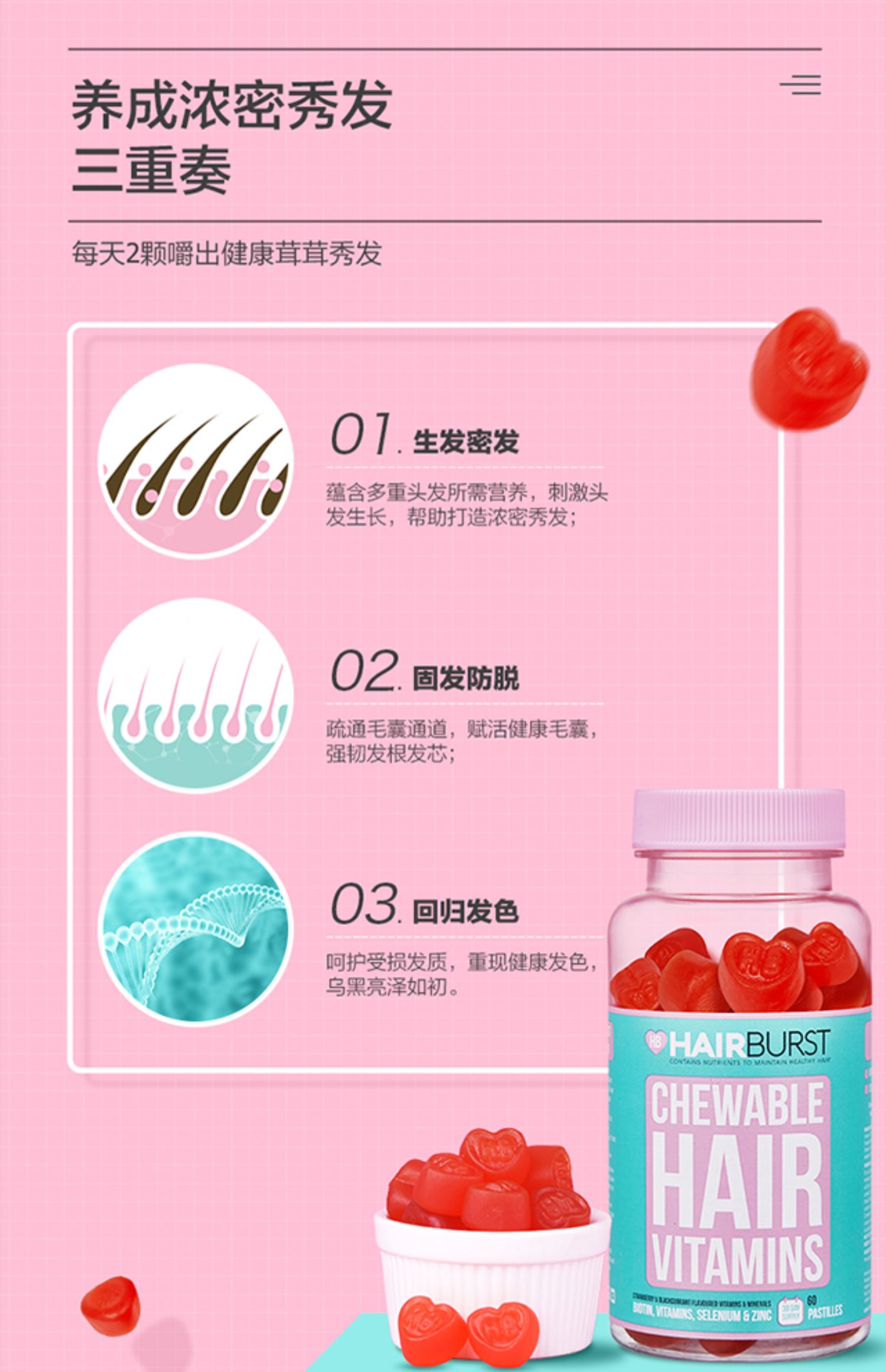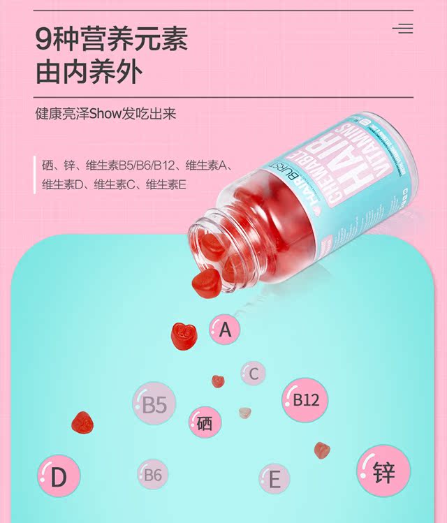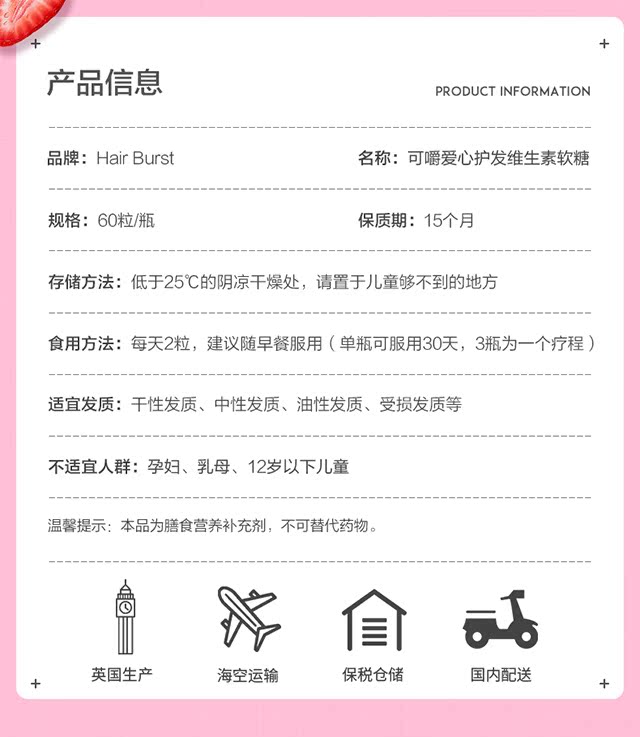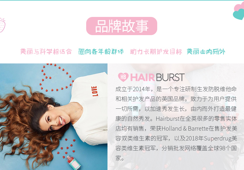 英国进口【Hairburst】国际巨星品牌,网红达人种草品牌,风靡英国的防脱爱心软糖,护发促生长生发维生素,重现闪耀,致力秀发美之力量!【赠运费险】