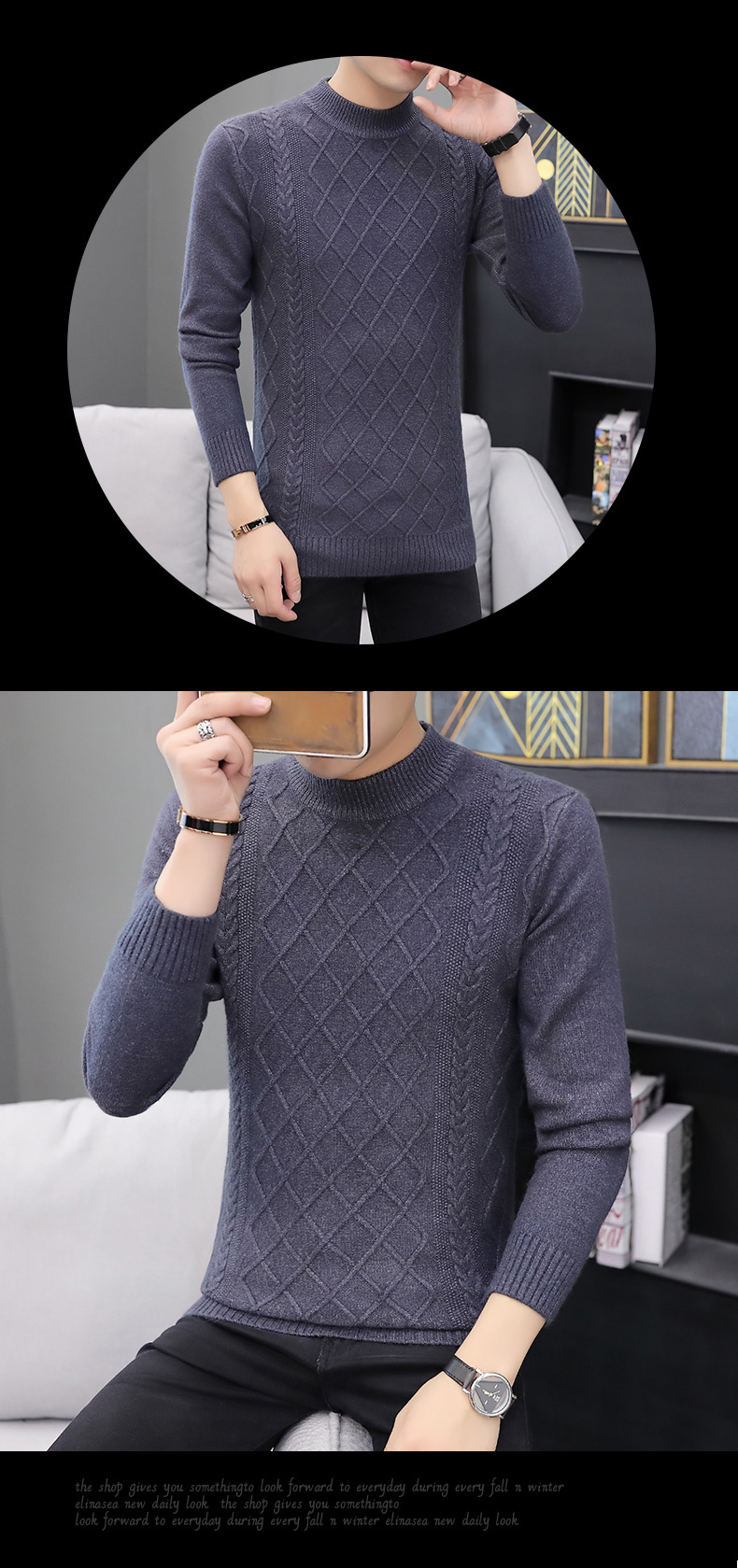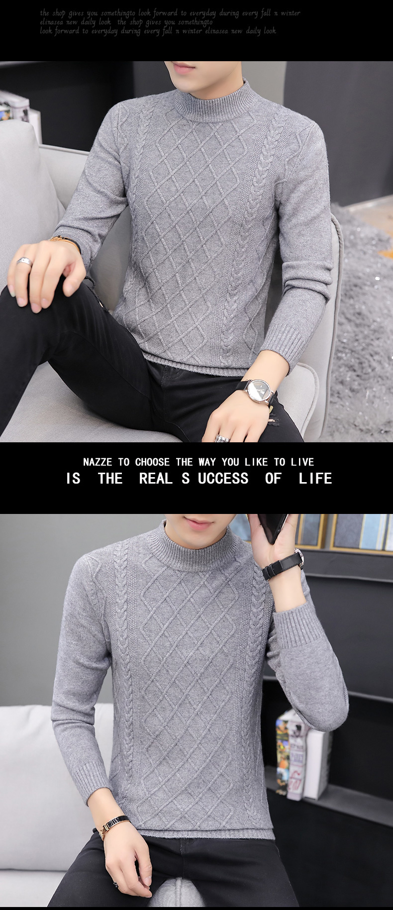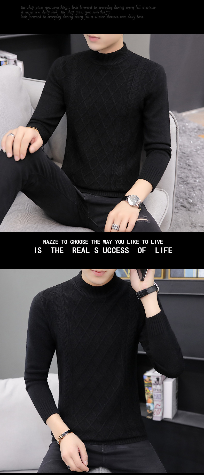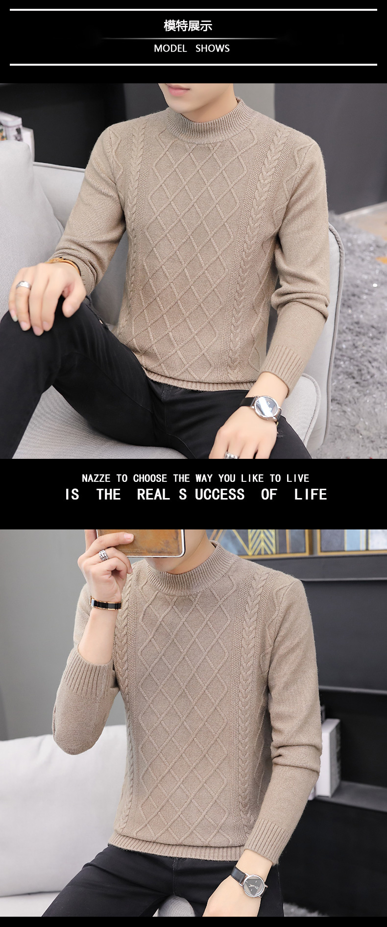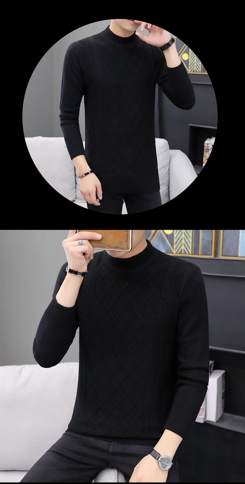 毛衣男冬宽松半高领修身加厚打底针织衫