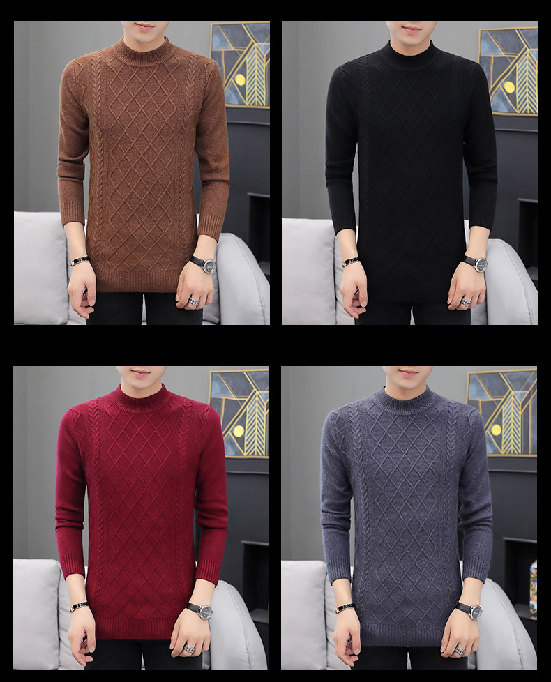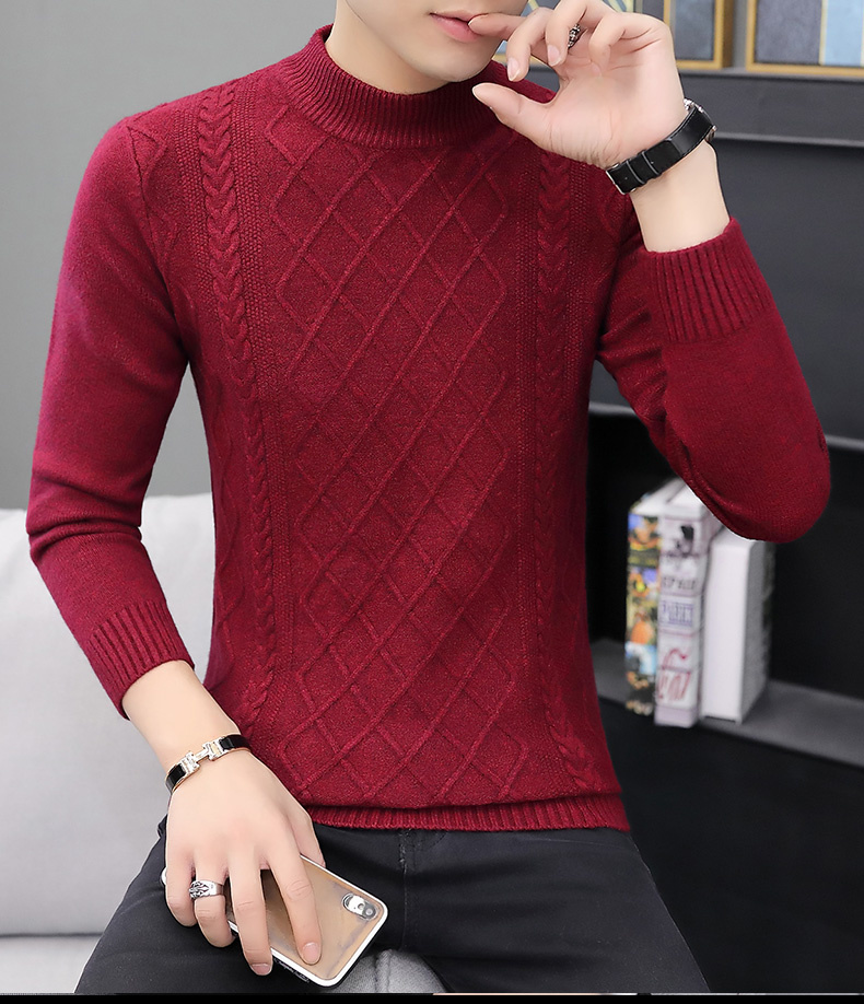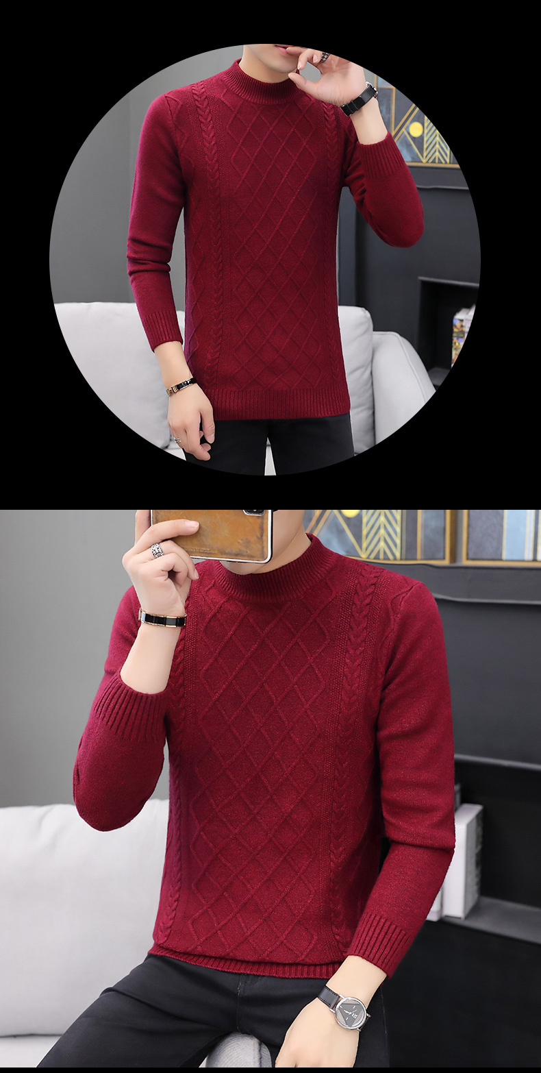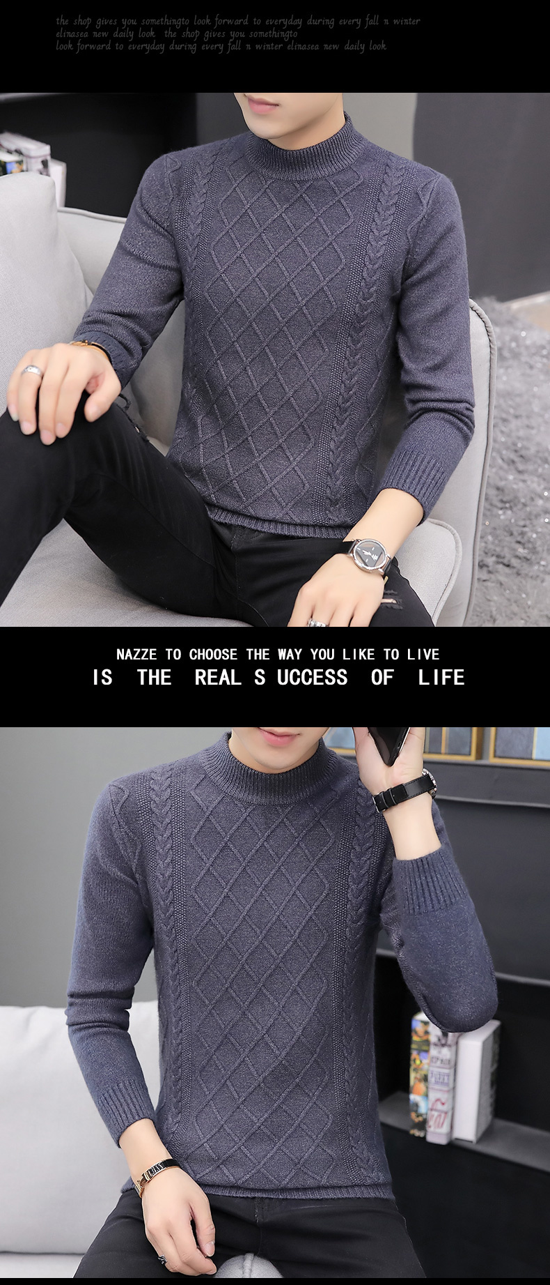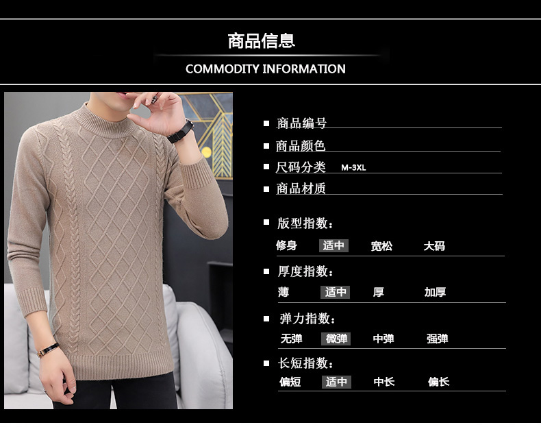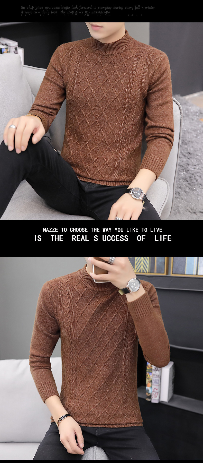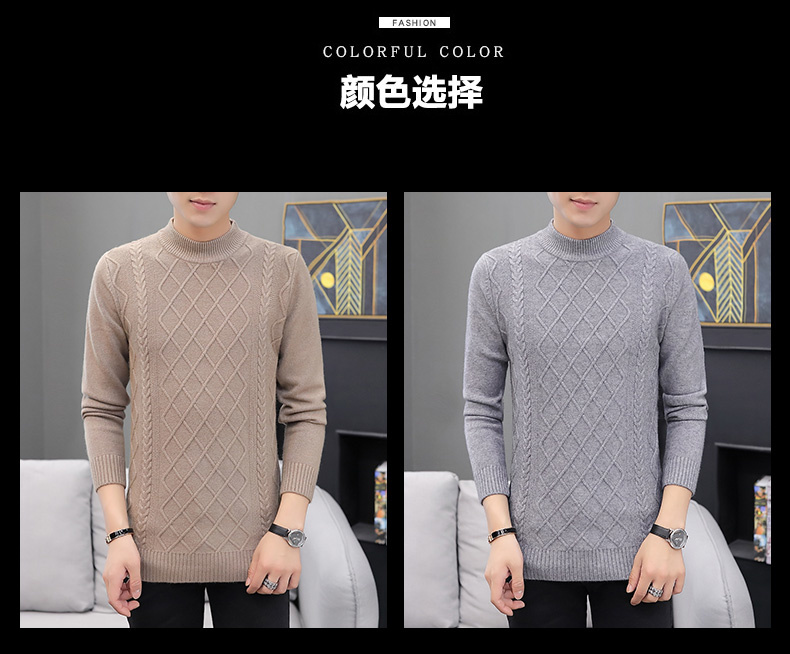毛衣男冬宽松半高领修身加厚打底针织衫