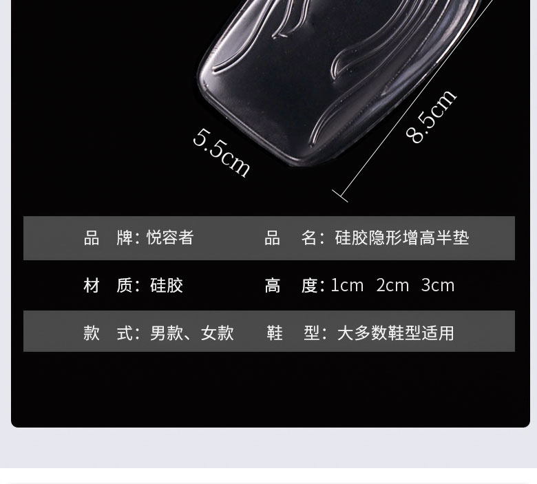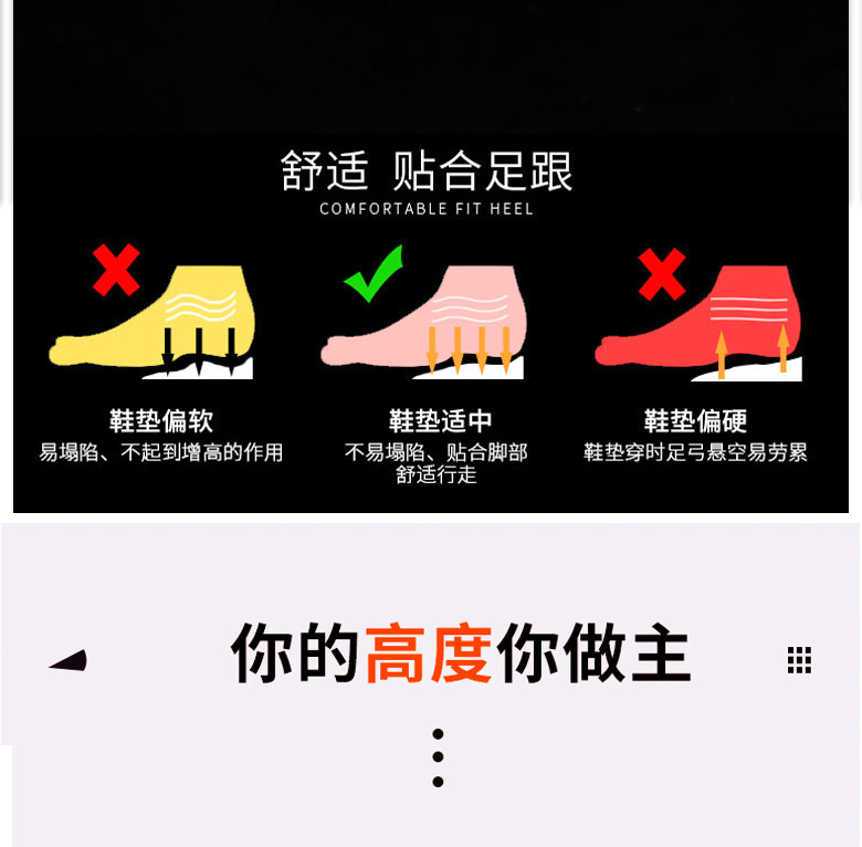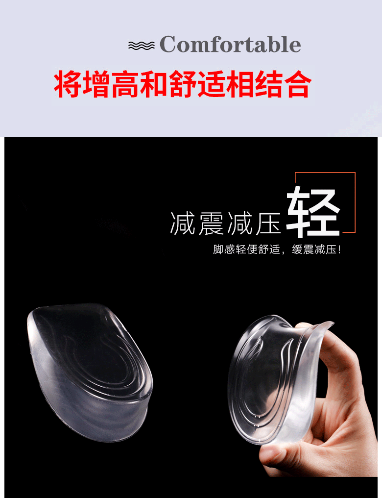 隐形内增高,应聘相亲必备,弹力减震双倍舒足,防滑不臭脚,舒适透气,Q弹硅胶减震可拆设计,多层高度随心选!
