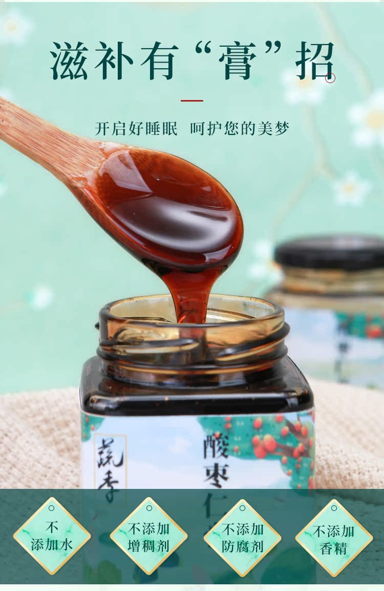 【蔬季酸枣仁膏】食材经7道工序52小时熬制,一拉成丝,颜色透亮,酸枣仁膏气味香甜,有效改善睡眠,失眠者的福音。速度抢!