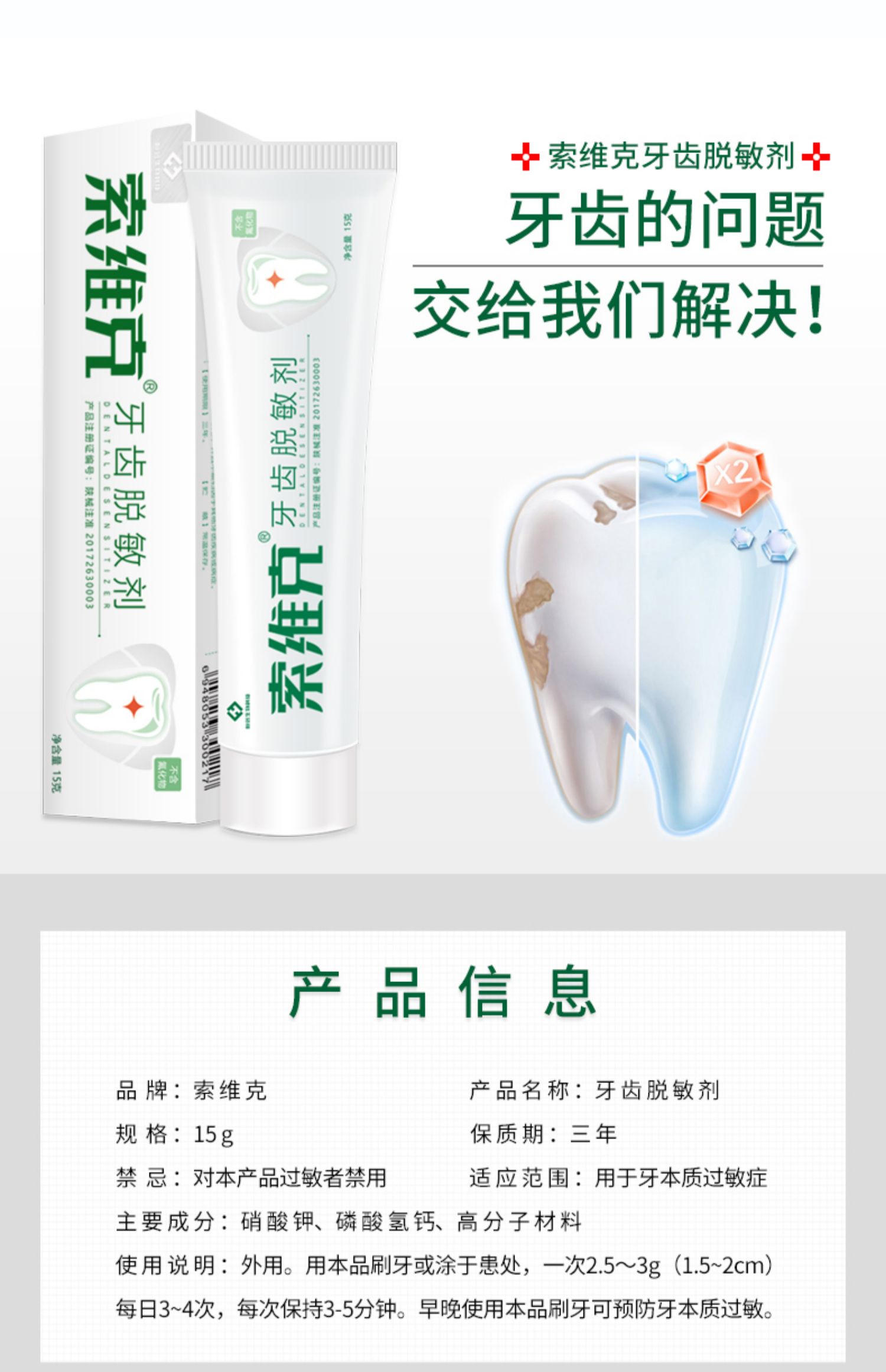 【医院同款】索维克牙齿脱敏剂,二类医疗器械;医用级牙膏,无氟配方,有效治疗牙本质过敏症,多效牙龈护理,缓解疼痛,不惧敏感,清新口气,健康从口腔开始!【赠运费险】
