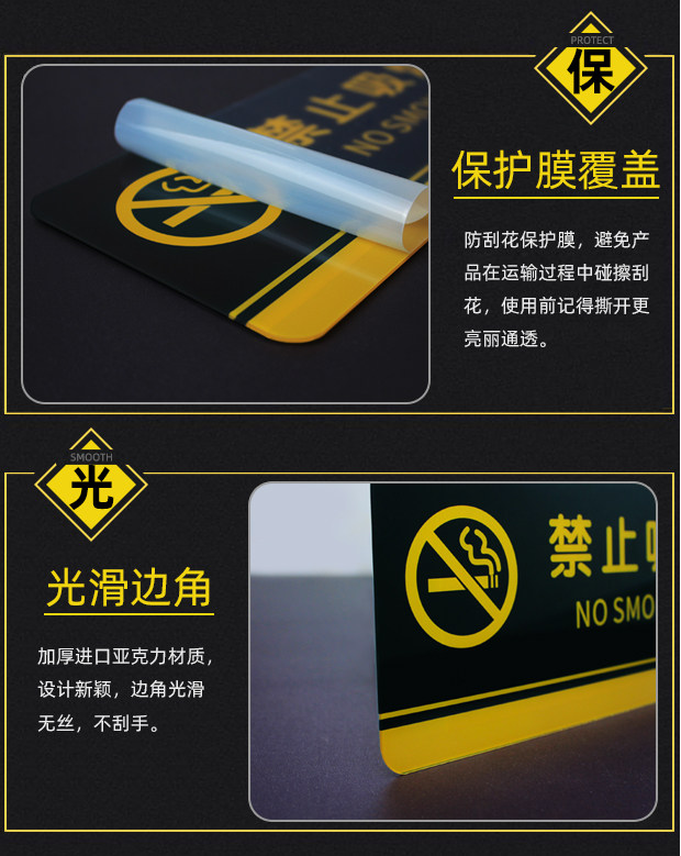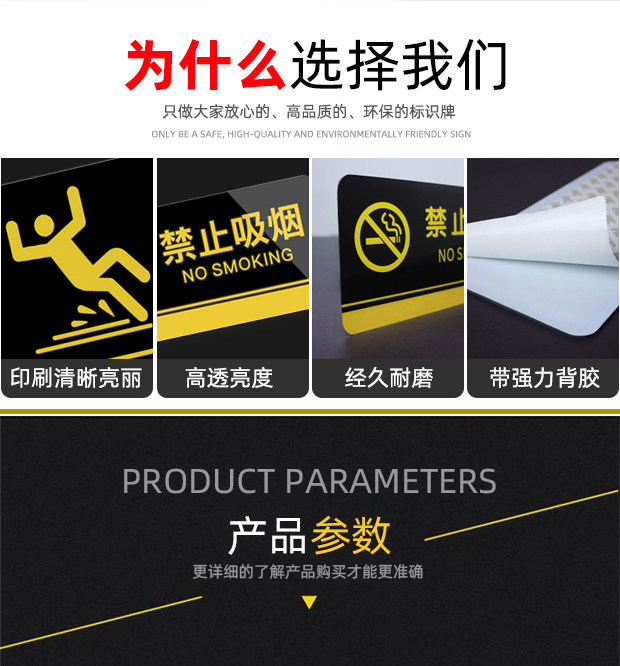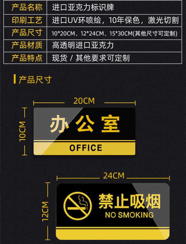 厂家直销,进口亚克力定制标牌,精湛工艺,防晒防刮防水,表面有保护膜,3M强力背胶,高清UV彩印,色彩纯正持久耐用,字迹清晰,可任意定制内容尺寸!