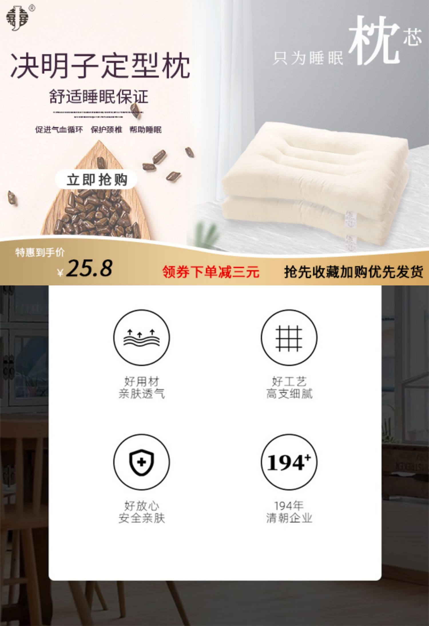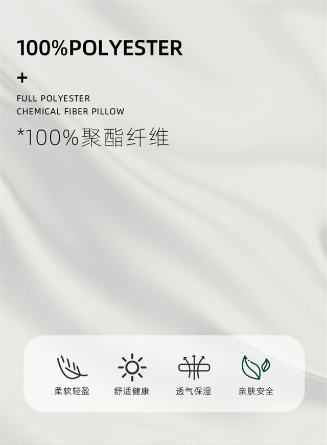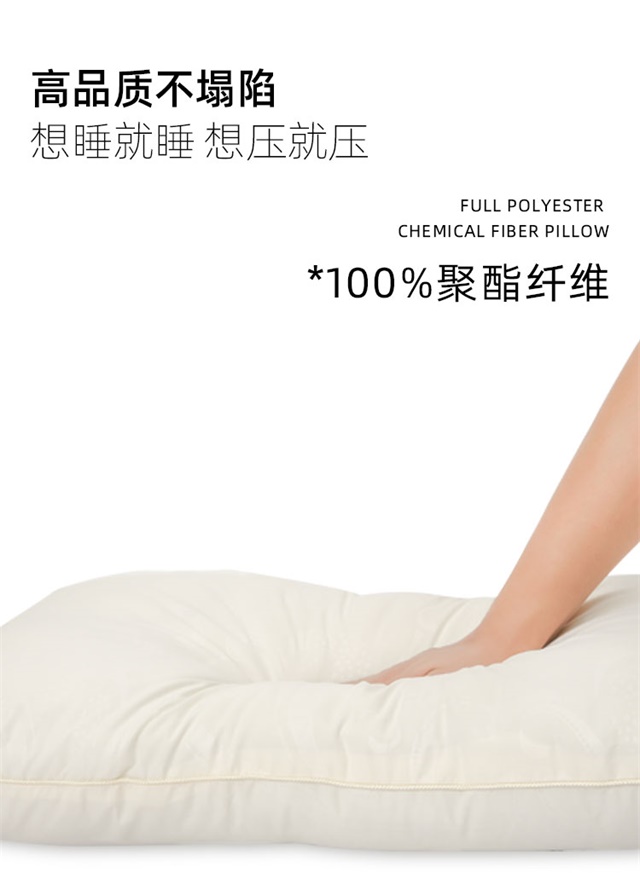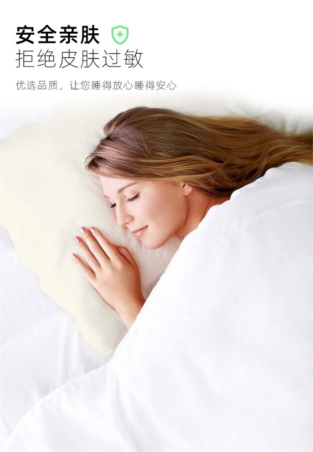 护颈亲肤舒适,按压回弹不变形,甄选纯面料,亲肤,透气排汗吸湿,蓬松柔软,贴合颈部曲线,舒服护颈,提高睡眠质量