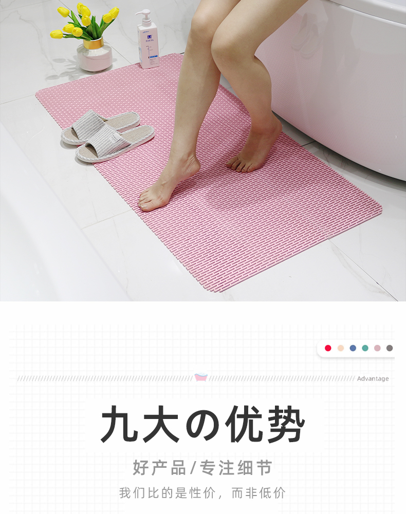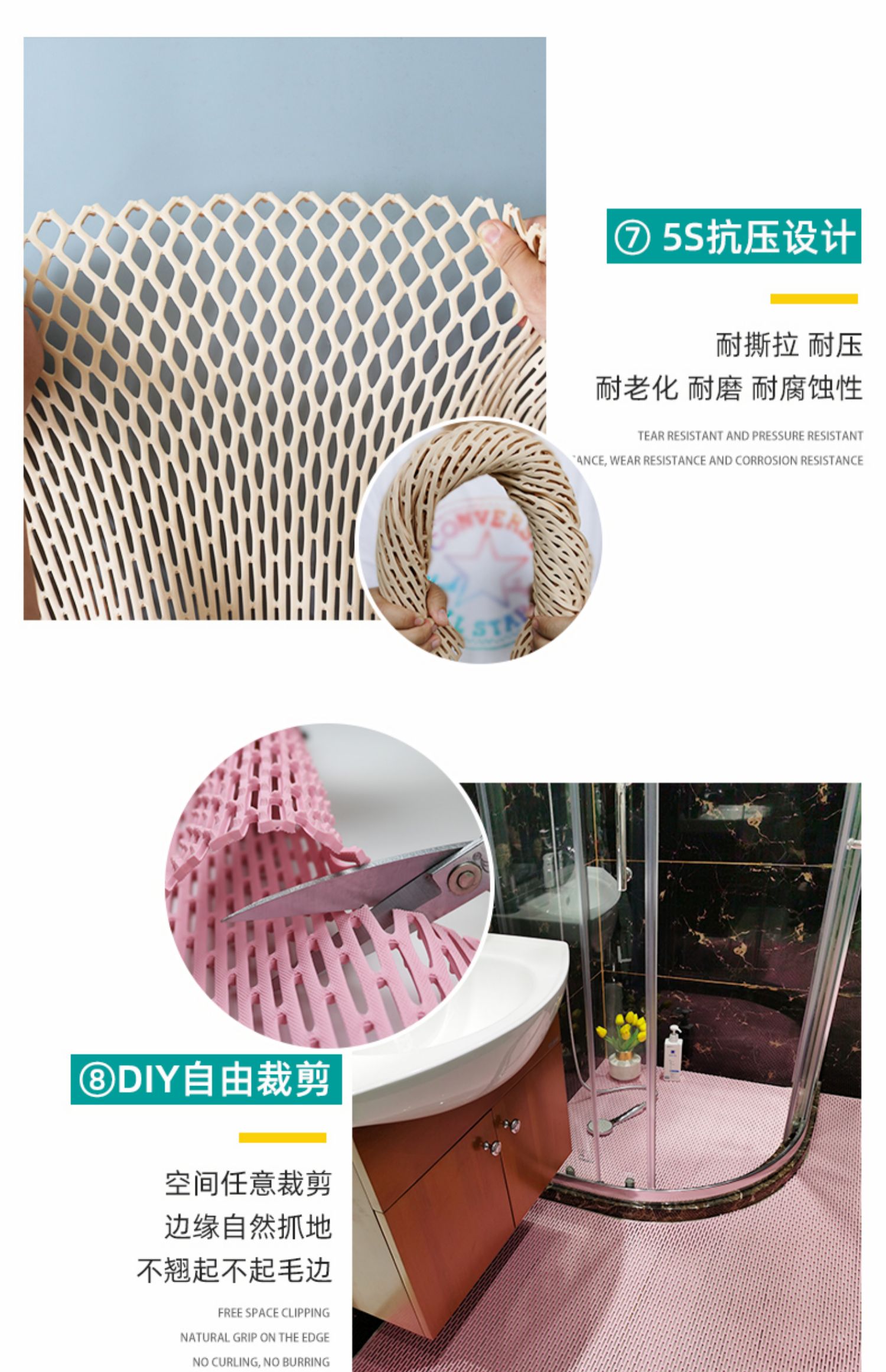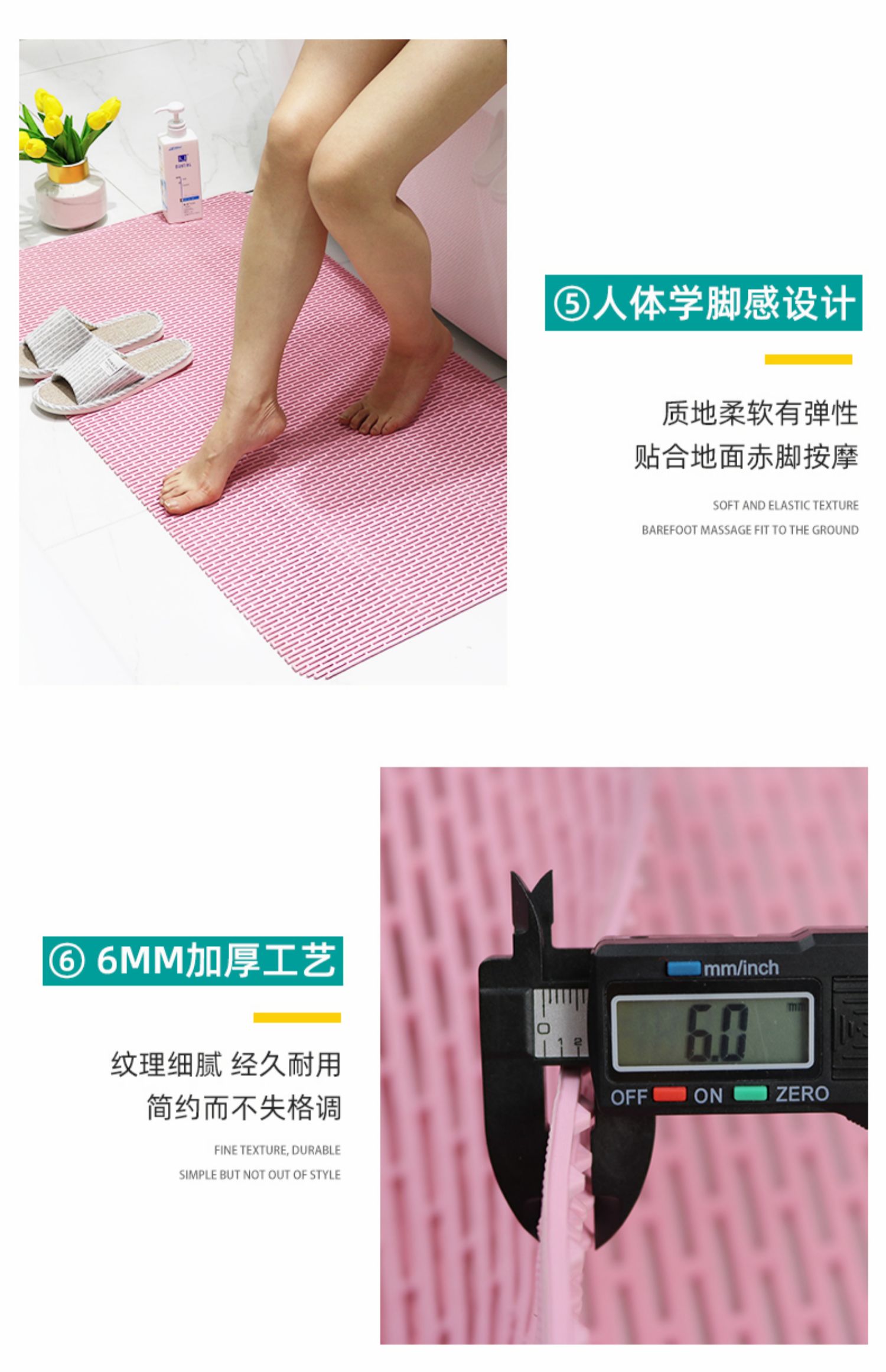 浴室镂空疏水防滑地垫儿童可用【60cm*90cm】券后仅9.9包邮赠运费险。新环保PVC材质,易清洗,易打理。AB面立体双面防滑,文理细腻360度全方位快速排水,经久耐磨。自由裁剪,结实耐用!