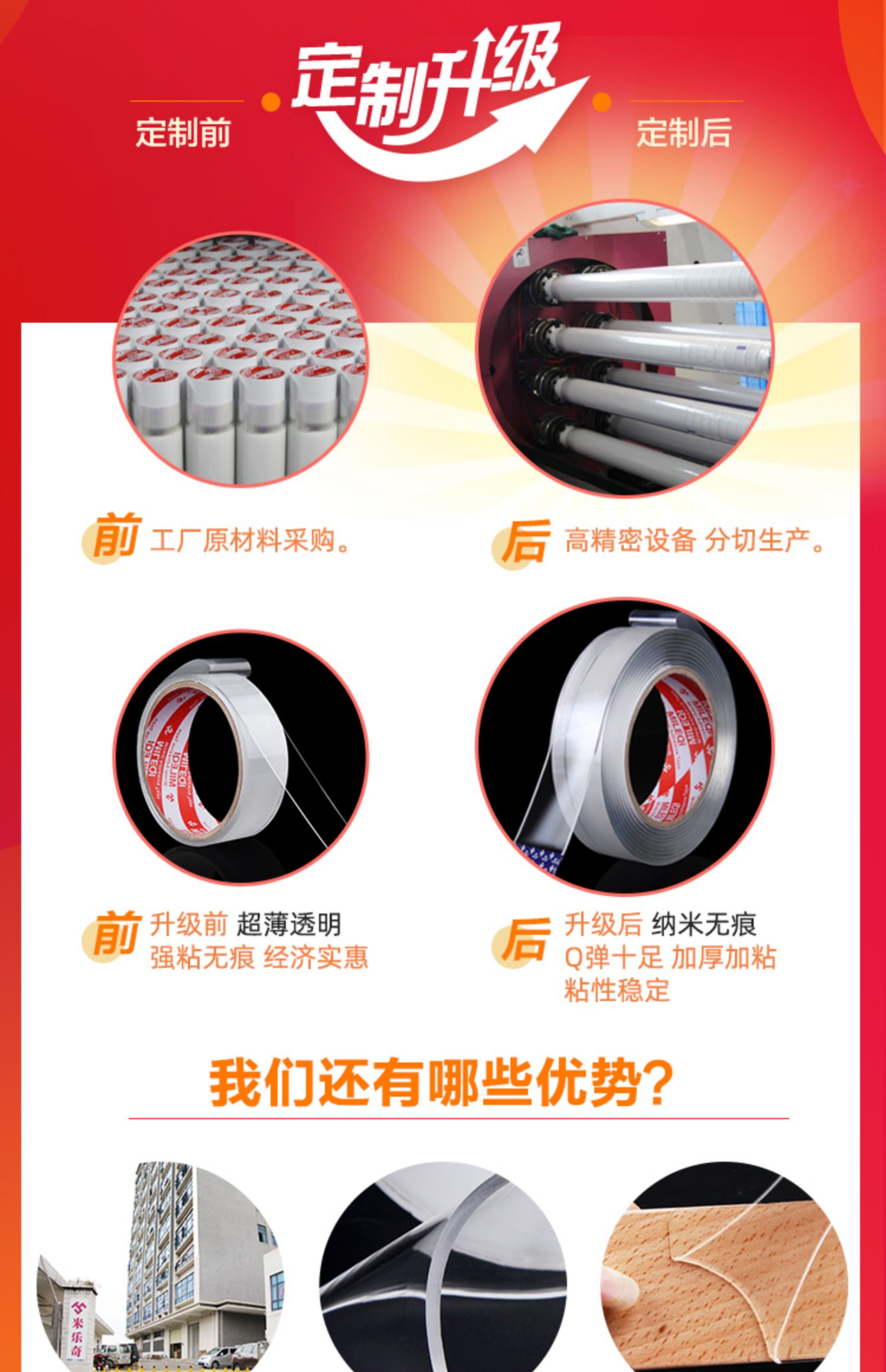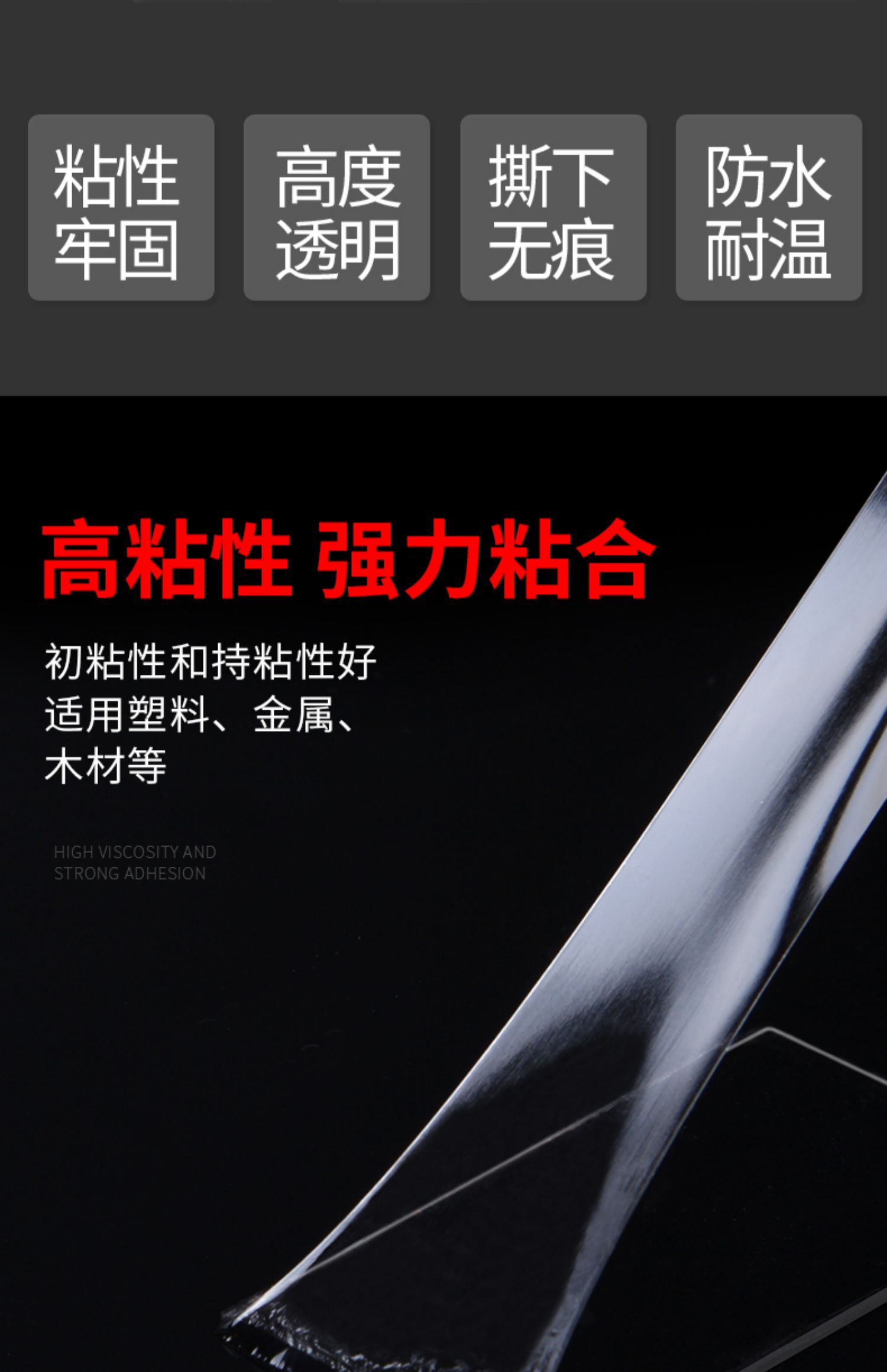 防水防潮,万次纳米双面胶,粘性强,耐高温,超防水,抗拉伸,无残胶,应用范围广,随意粘贴,独立成贴,随用随贴,可水洗万次魔力纳米胶带!!!