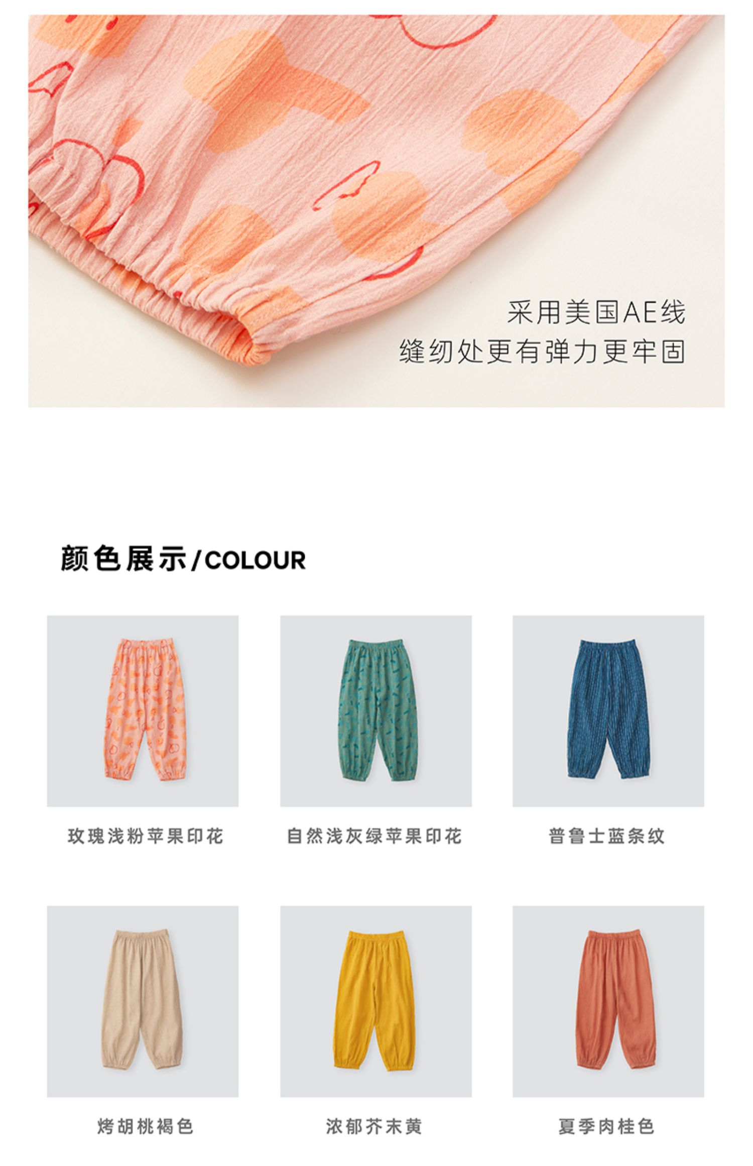 【allblu幼岚】儿童绉纱防蚊裤(90cm–140cm),多色可选。夏季必备,透气舒适,可当运动裤,居家服等等,超适合孩子穿!不要等到旺季涨价再买【赠运费险】