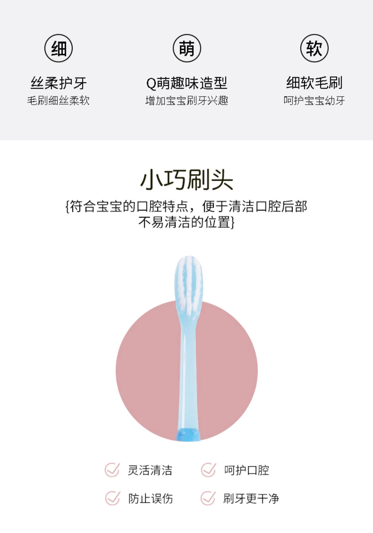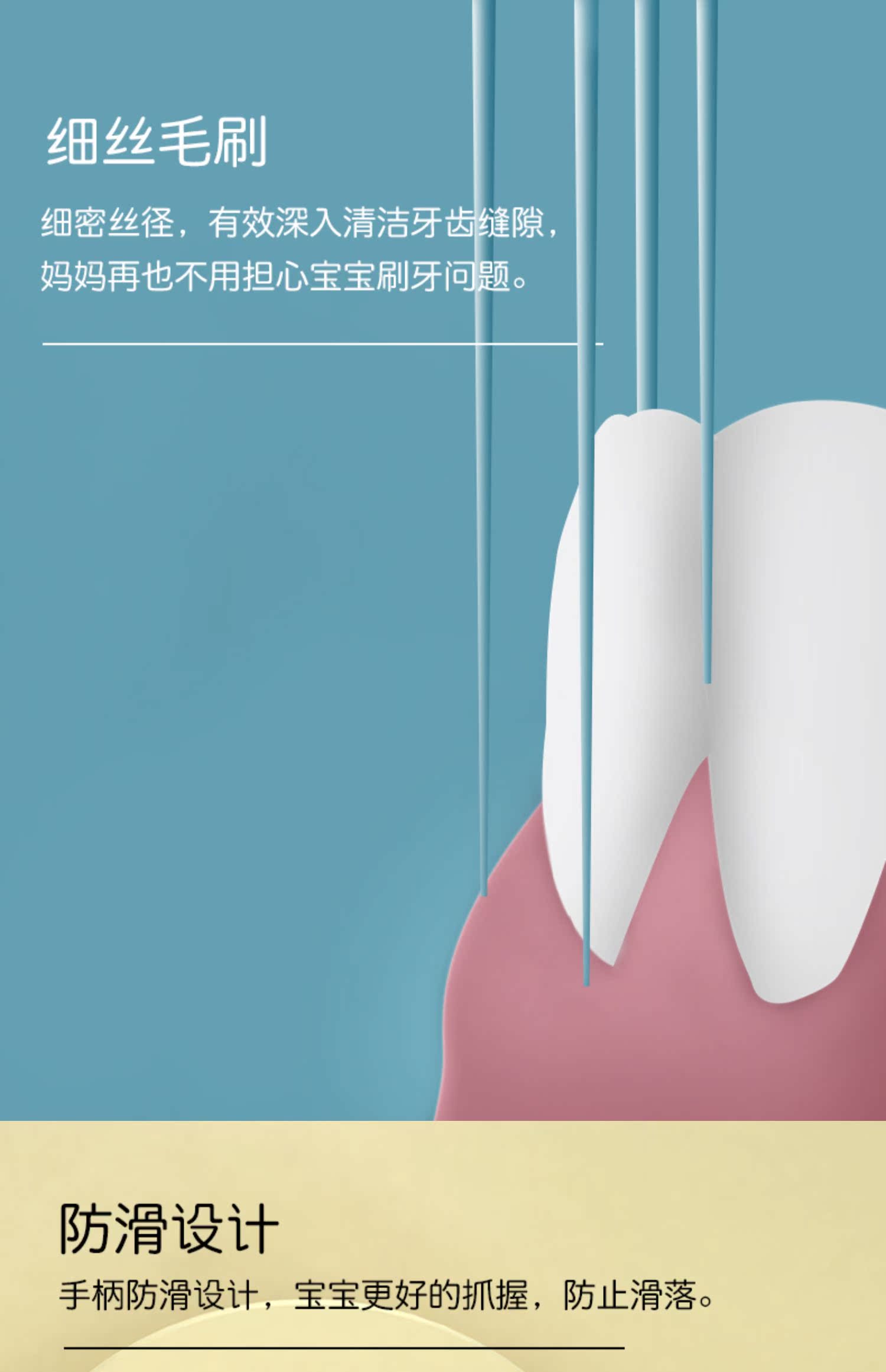 不含荧光剂!防滑刷柄,专为儿童设计,呵护稚嫩牙齿,绵柔亲和,细密洁齿,不掉毛,不倒毛,不刺激牙龈,宝宝洁齿护齿必备!【赠送运费险】
