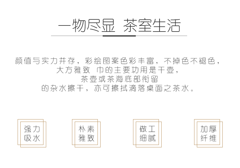 吸水功夫茶巾,颜值与实力并存,精选优质材料,触感细腻,防烫,不掉色,不褪色,强力吸水,不起球,加厚纤维,多色可选,一物尽显,茶室生活,快来。