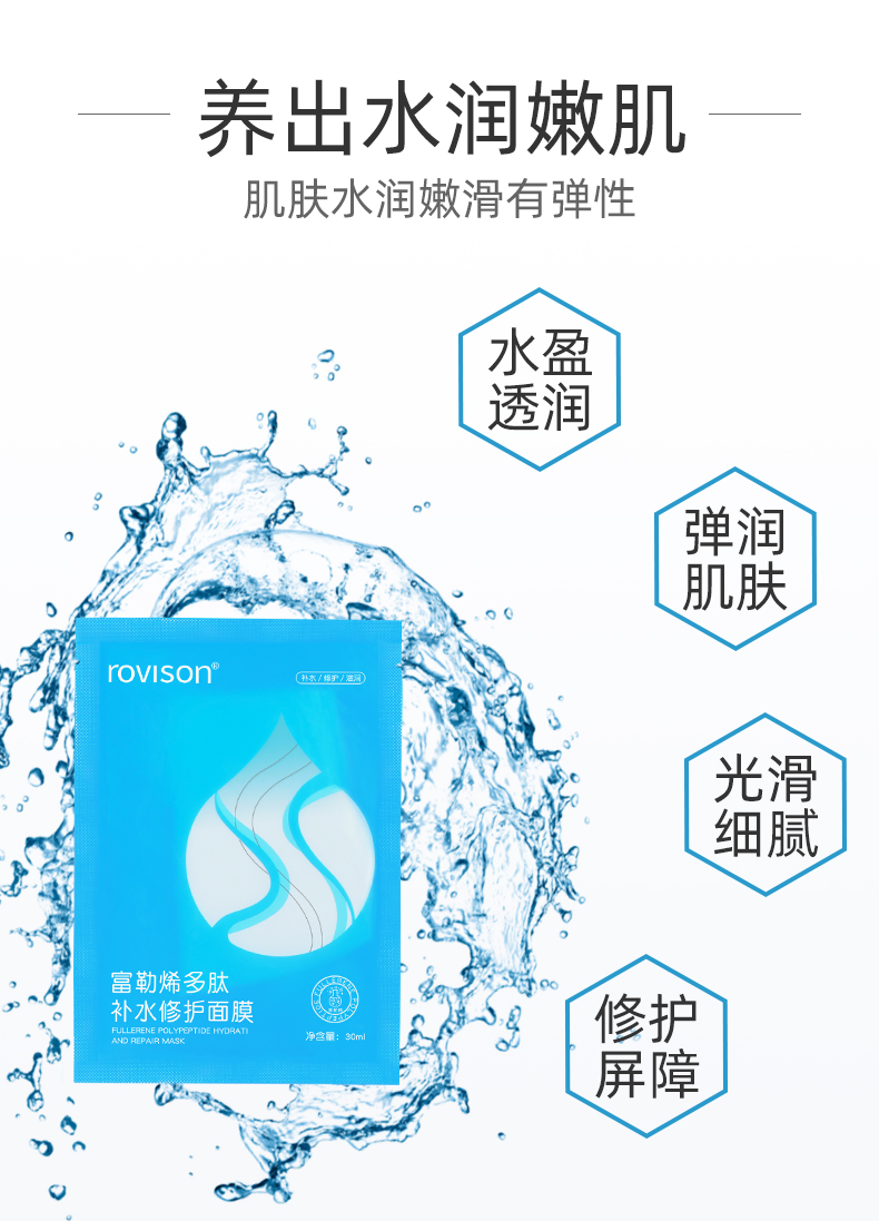 1片修护干燥敏肌,延缓初老,平滑肌肤,养出水润嫩饥,明星分子富勒烯,透明质酸钠,密集补水,会呼吸的面膜,让肌肤随时随地地喝饱水。