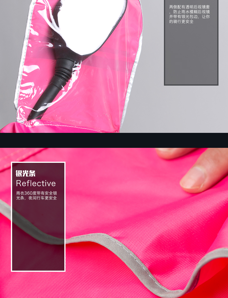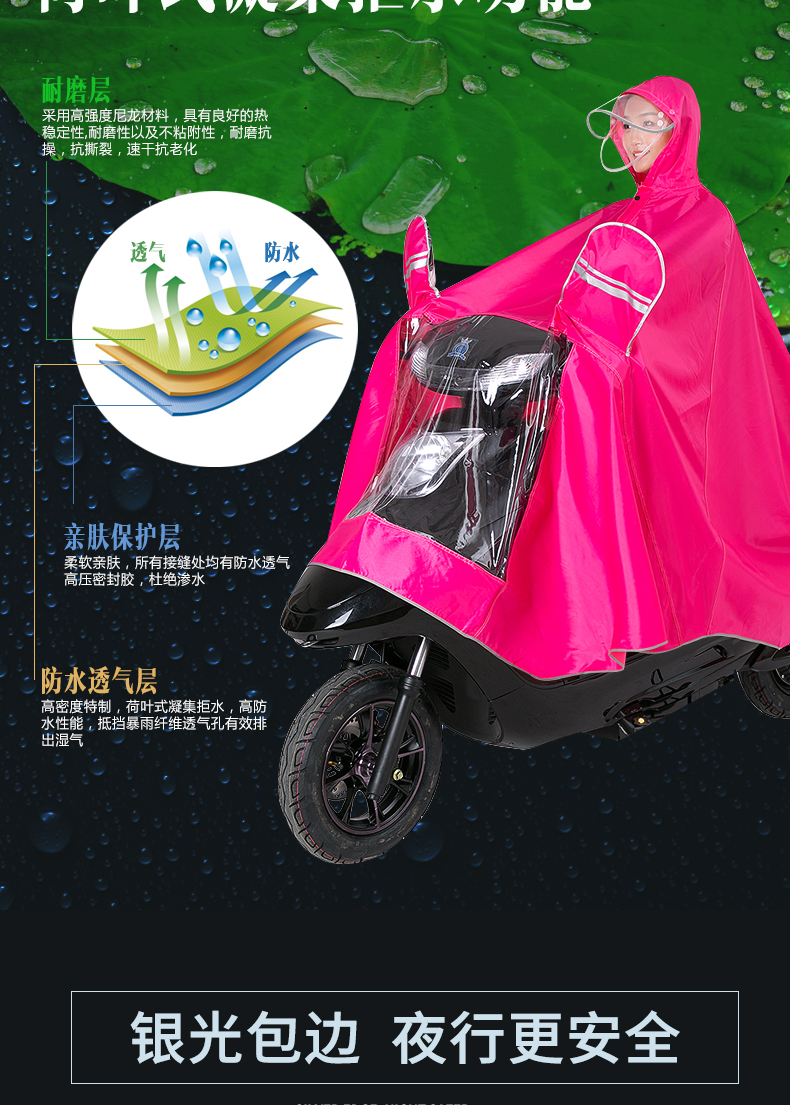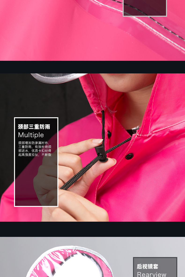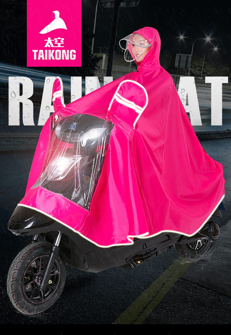 十年专注雨衣。贴心双层面罩设计,全面防雨,高透面罩视线清晰安全;可拆卸~方便戴头盔哦~多色可选,值得信赖!这个雨季,下的再大,都有我陪你。