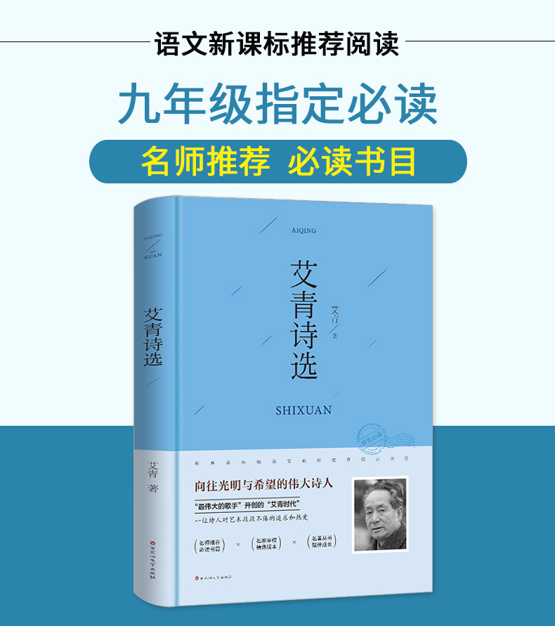 学校老师指定暑假必读书籍,语文新课标推荐书目,艾青诗选经典名著书籍,疑难注释,大字护眼,印刷清晰,青少年必读经典课外书,暑假必读名著,5.8抢购,好书速抢!