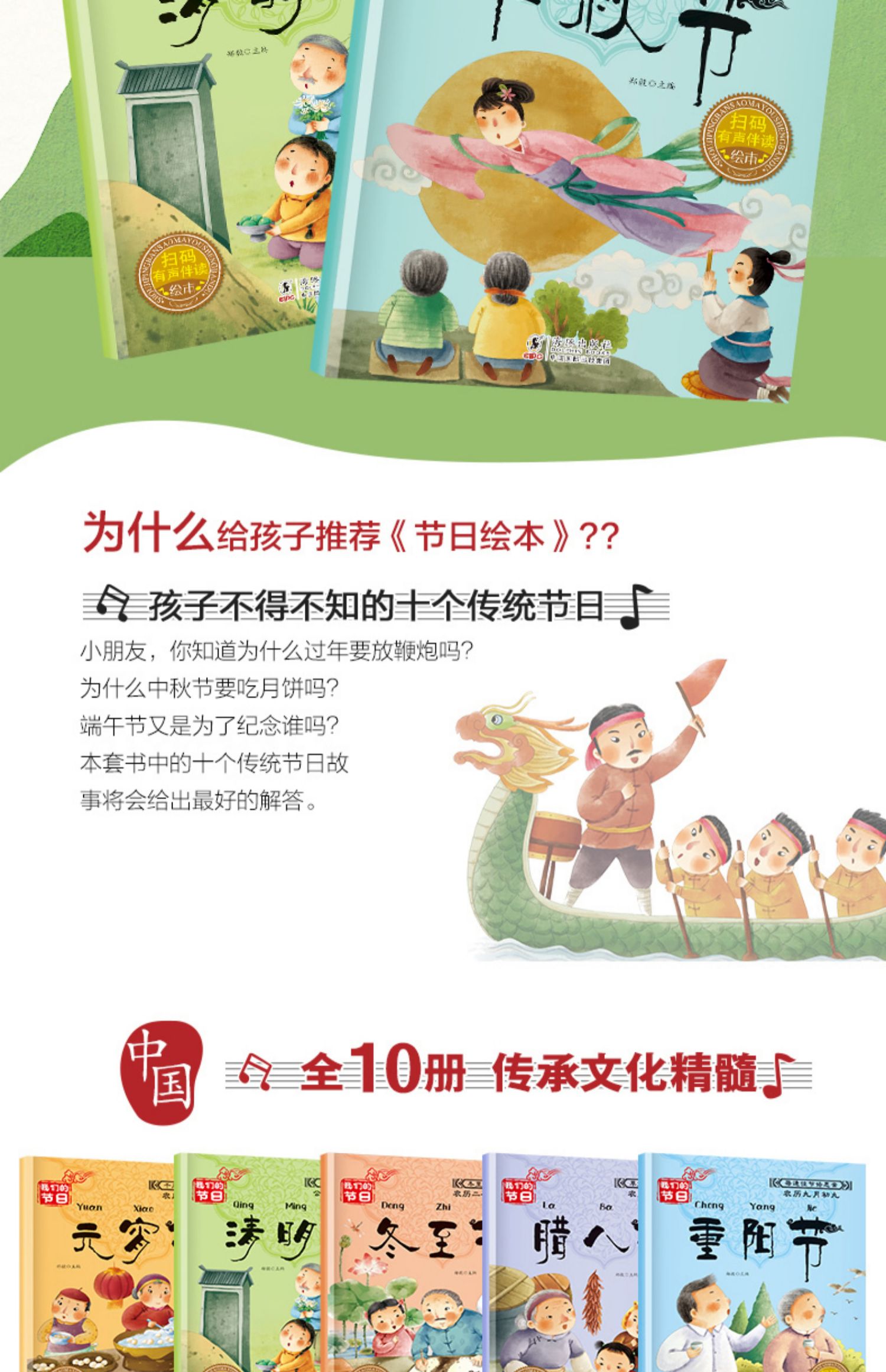 儿童早教启蒙认知绘本,中国传统节日科普故事书,春节新年、端午节、中秋节百科知识,16开大版本,全彩印刷,插图精美,可有声伴读。学前幼儿园宝宝必备,小学生必读课外读物,宝妈必备睡前童话故事书。