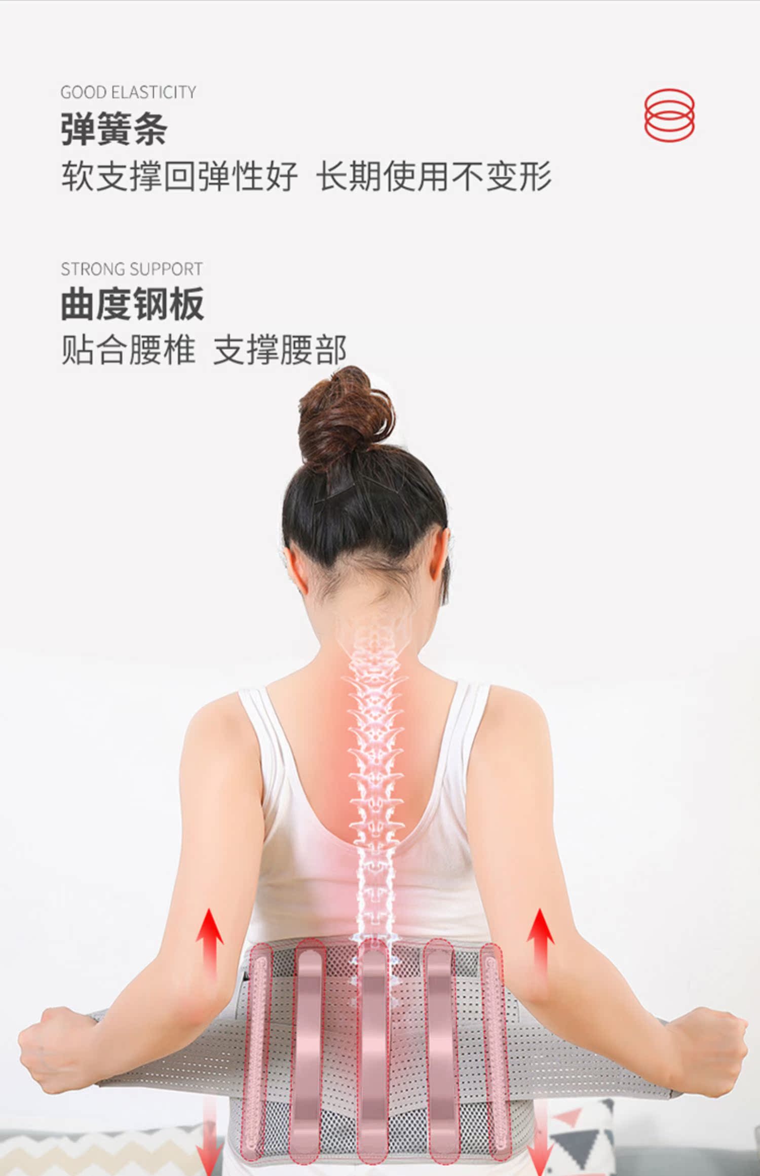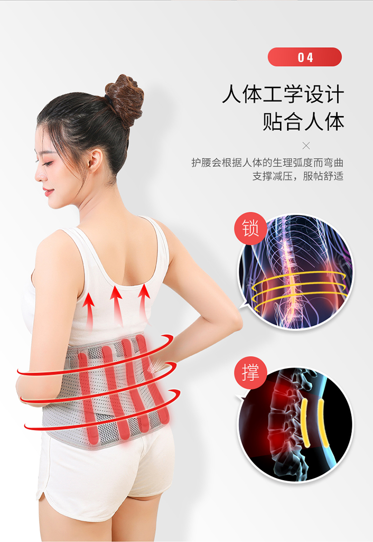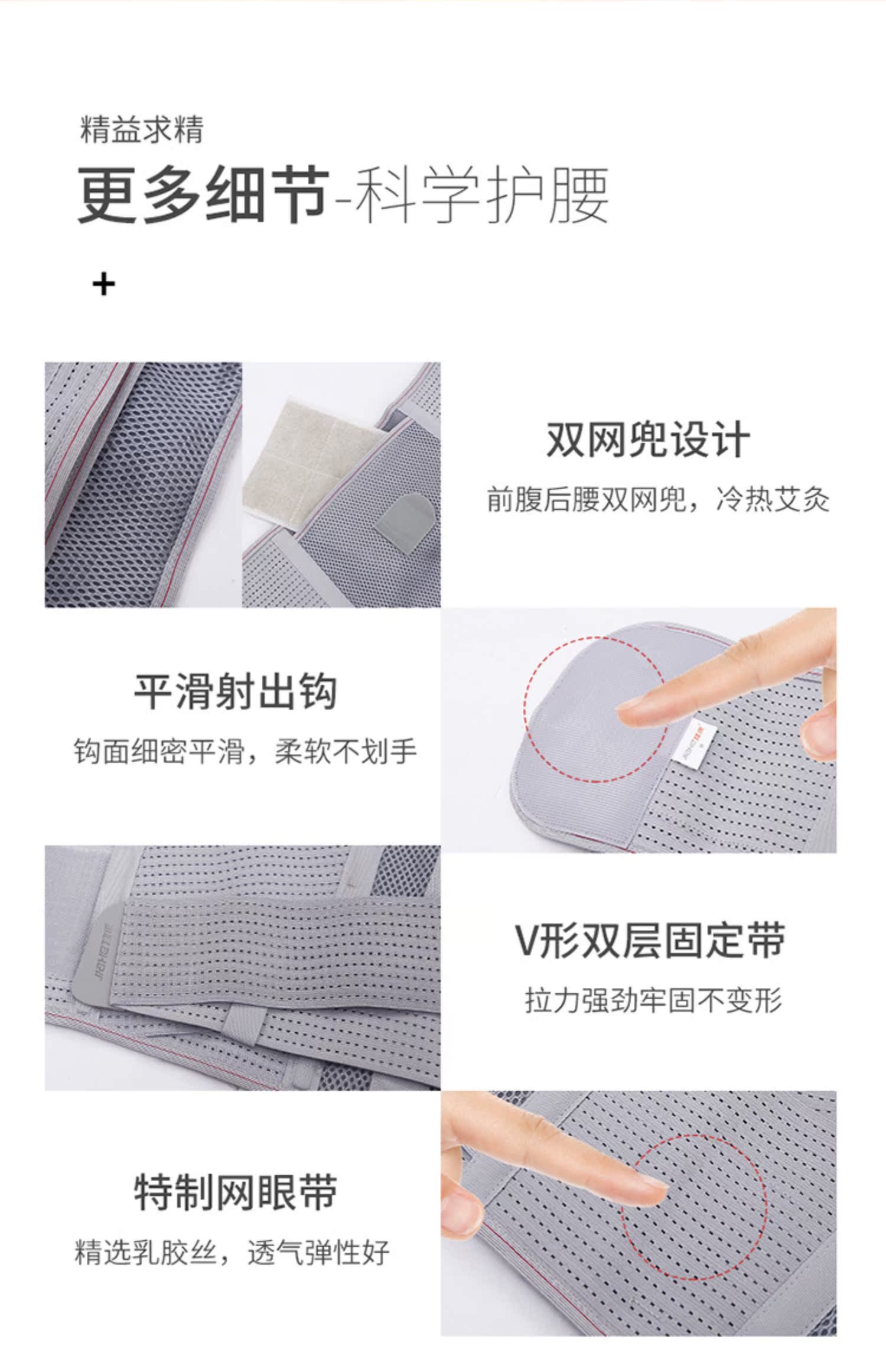赠送可折卸自发热垫片,方便实用真正的品牌好货,优质面料+制作工艺全国各大医院、线下实体店均有同款销售鱼丝网布编织,佩戴舒适不闷热,一年四季皆可用4根钢板支撑贴合腰部缓解腰椎压力,有效矫正身