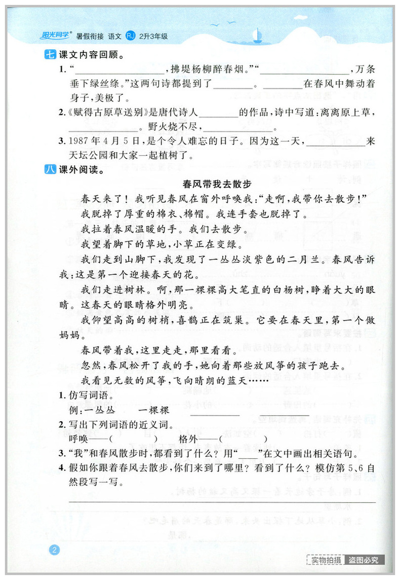 2020新版阳光同学暑假衔接二升三【语文数学全套】,家庭作业本的辅导书,同步课堂练习,让孩子暑假,有快乐的心情写作业,打破教育的门槛,快乐过暑假~