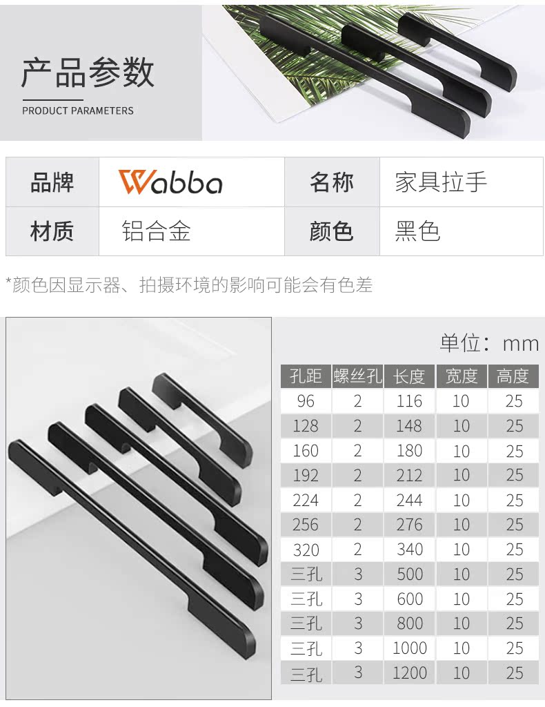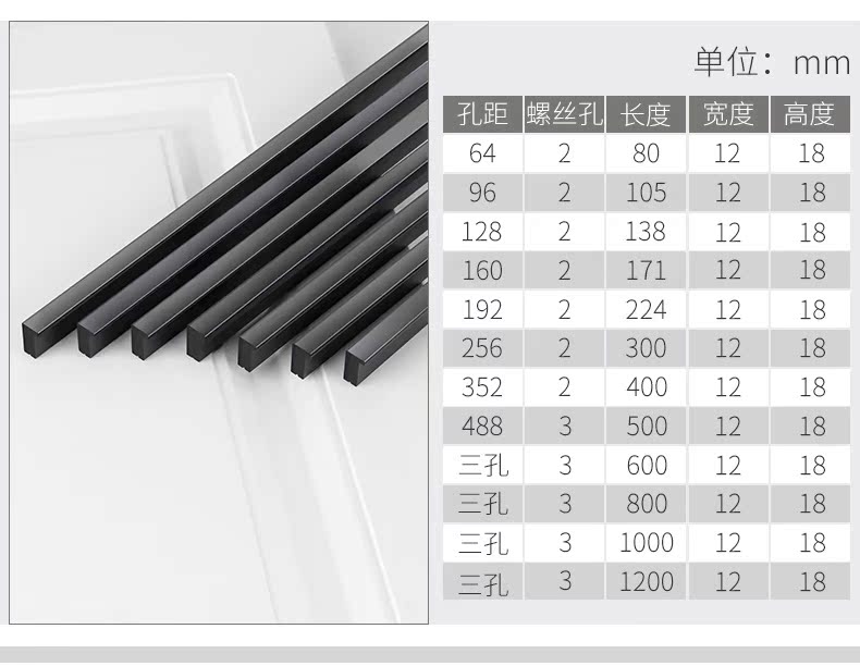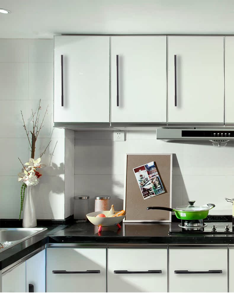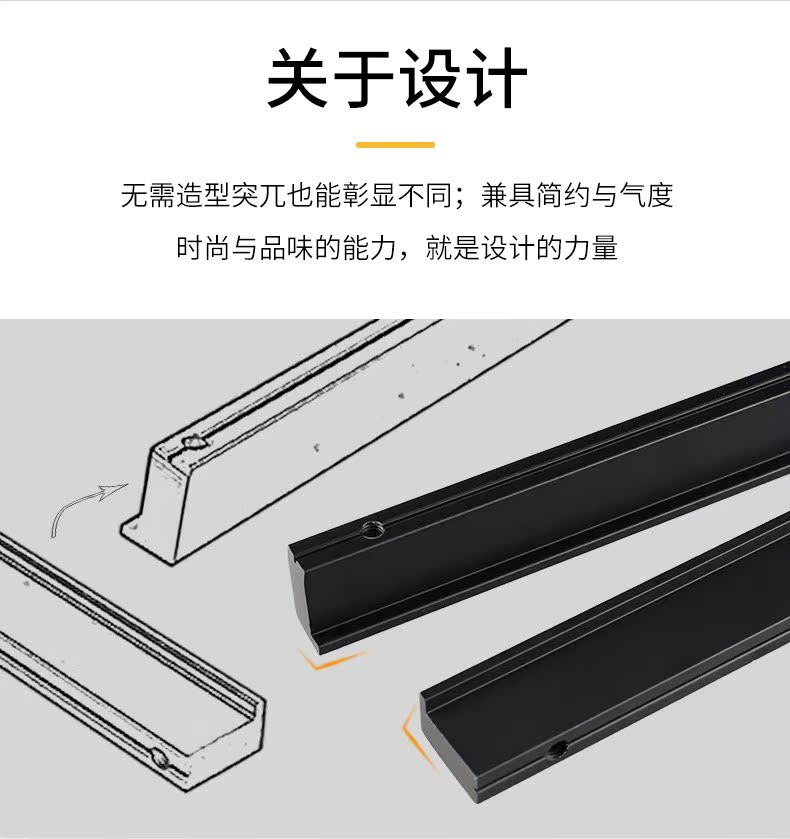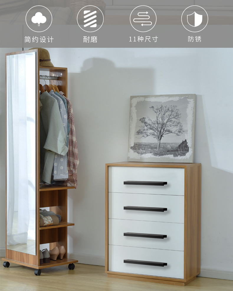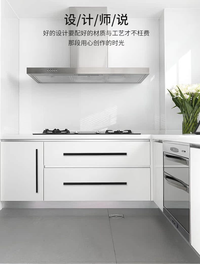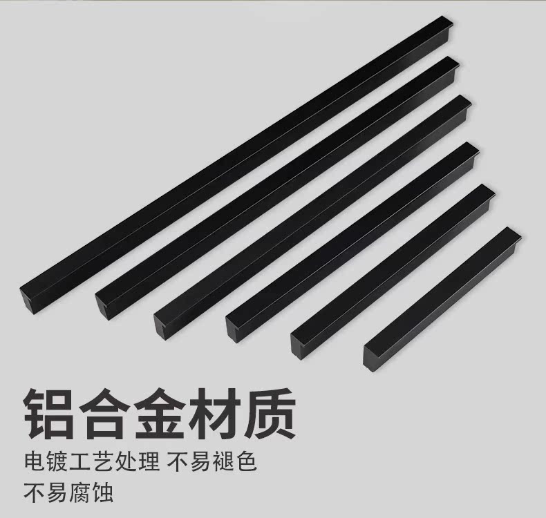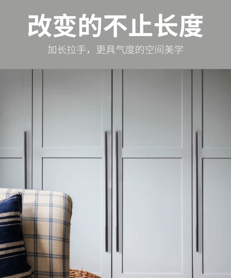 沃八柜子橱柜抽屉拉手,铝合金北美欧式现代简约加长黑色衣柜门把手。安装省心,实心加固,牢固耐用。