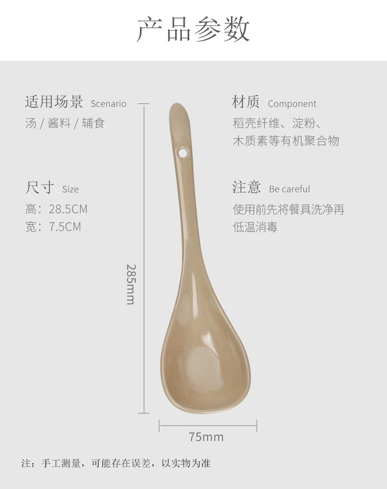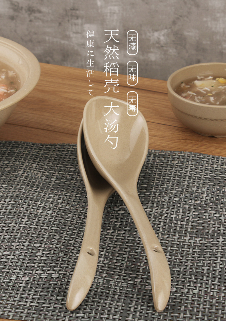 初色稻壳汤勺家用饭铲不粘锅汤匙日式大汤勺长柄稀饭小粥勺盛汤勺,无漆,无味,无毒,稻谷壳材,高密度工艺,无胶水粘合,高品质,是每个人健康保障之选!【赠送运险费】