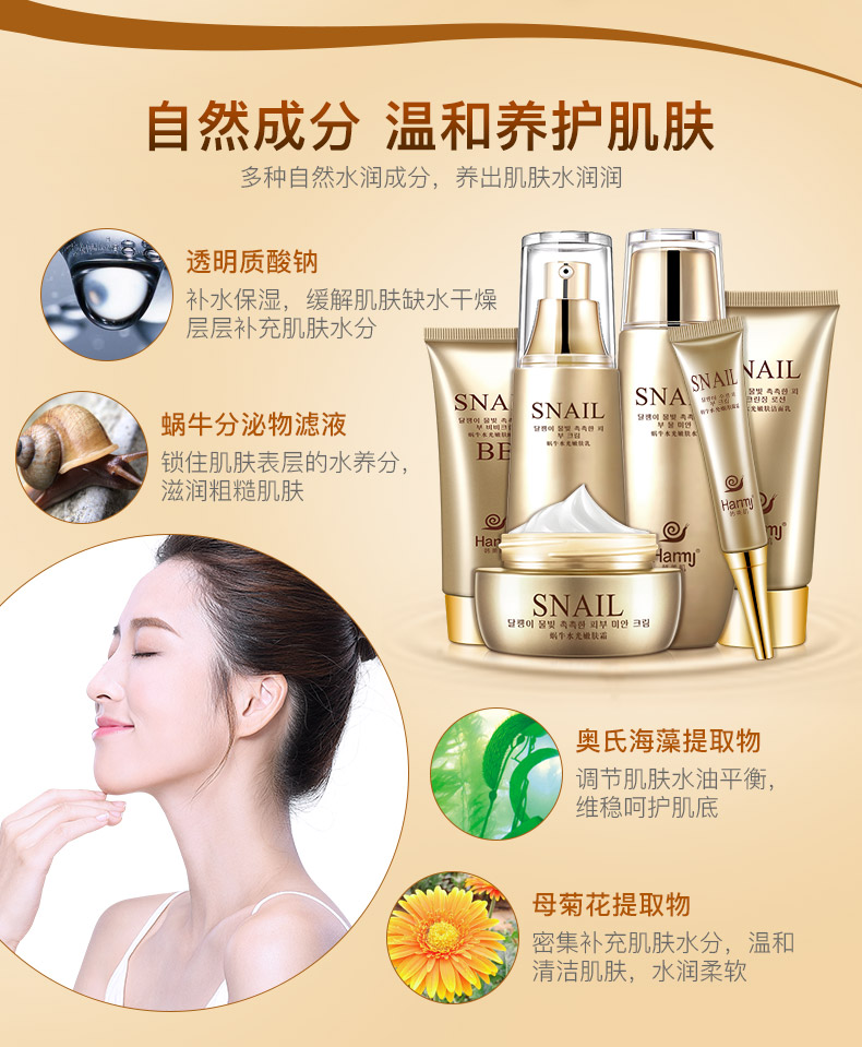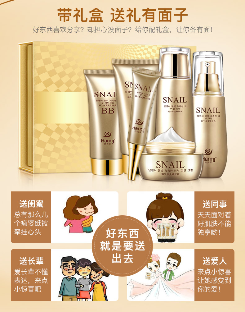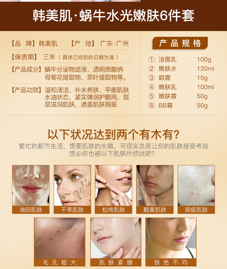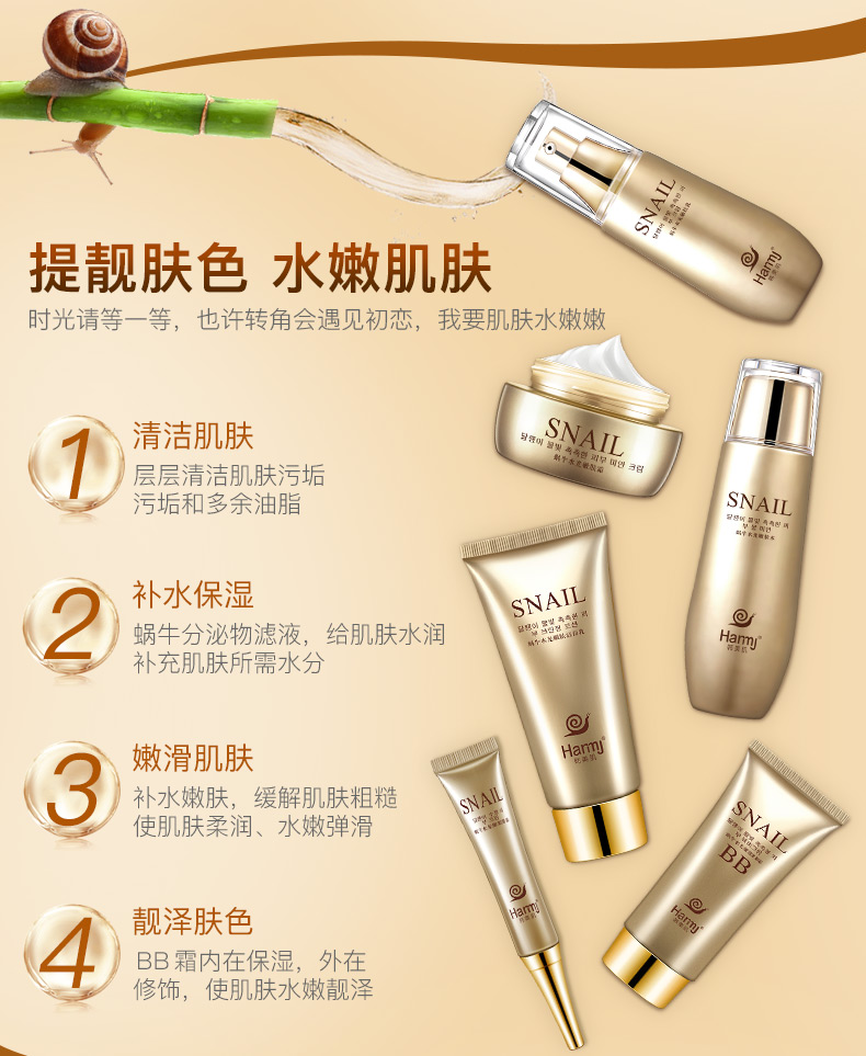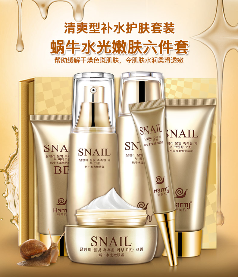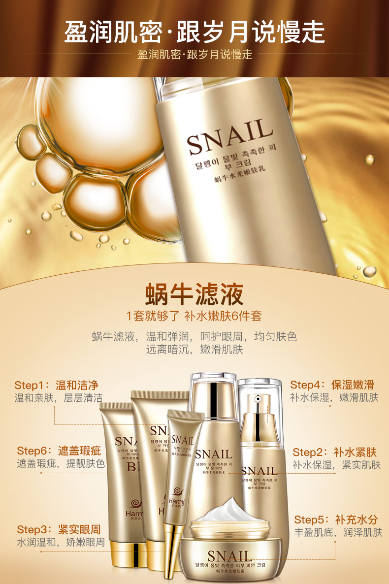 【超值蜗牛原液六件套】优生活优品质,国货精品,洁面乳爽肤水眼霜精华乳保湿霜BB霜一整套,让你的皮肤告别暗淡无光,使用以后皮肤水水嫩嫩,让你重返18岁的肌肤哟~