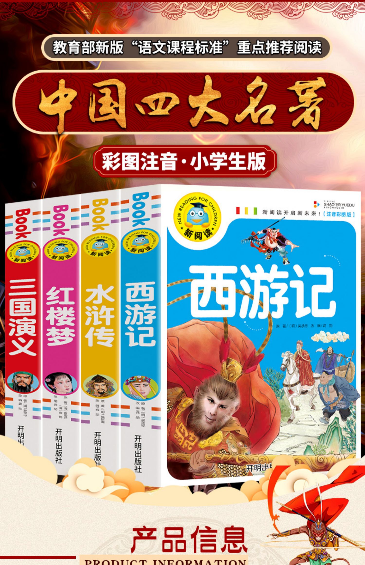 四大名著全正版彩绘注音版,教育部推荐读物,大字彩图注音,页末加以想一想,引导孩子思考,小学生必读经典名著!插图精美,高清印刷,纸质超好。