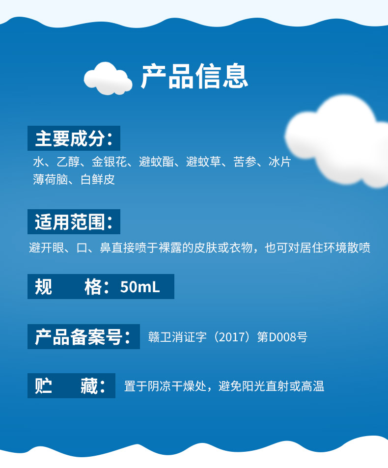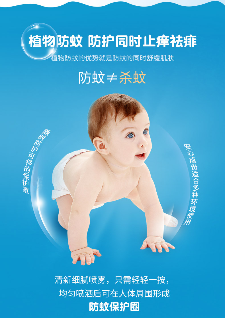 持续有效防蚊4小时,充分利用蚊虫讨厌的植物气味达到防护作用,防蚁同时并有肌肤修护功效。