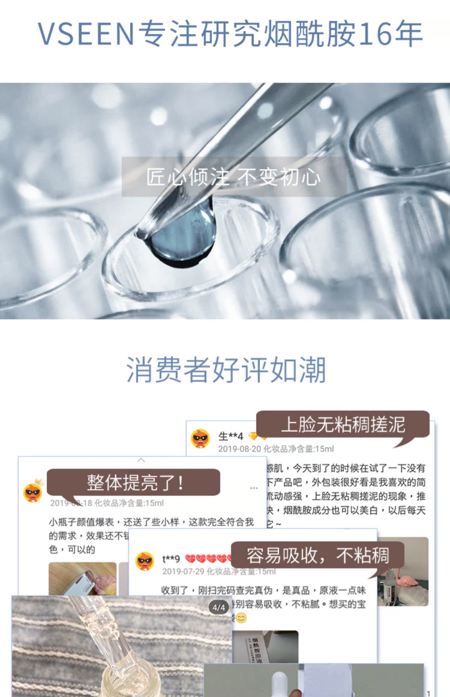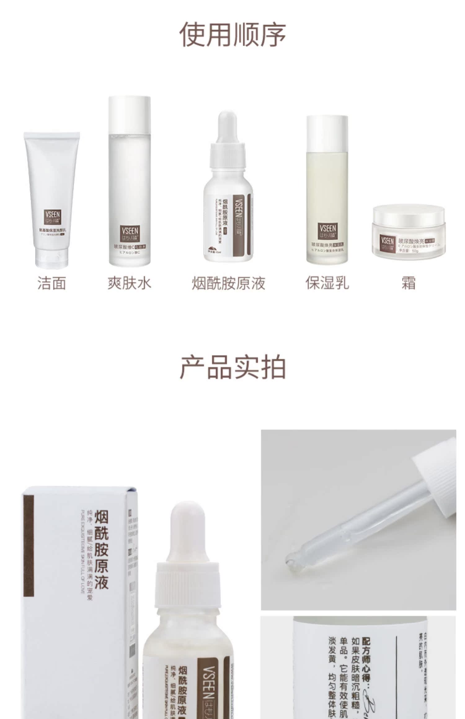 日本进口原料,黄金浓度配比,专注亚洲肤质,美白精华烟酰胺,提亮肤色,告别暗黄肌肤,重现白/润/美。你与女神之间只差一瓶精华原液!